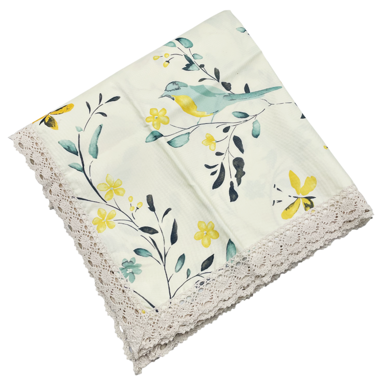 Transformă masa într-un colț de poveste cu această față de masă crem 140x180, în stil vintage, decorată cu un imprimeu delicat de păsări, flori și frunze în nuanțe pastelate de verde și galben. Designul aerisit și luminos aduce o notă de prospețime și naturalețe, perfectă pentru decoruri romantice sau shabby chic.