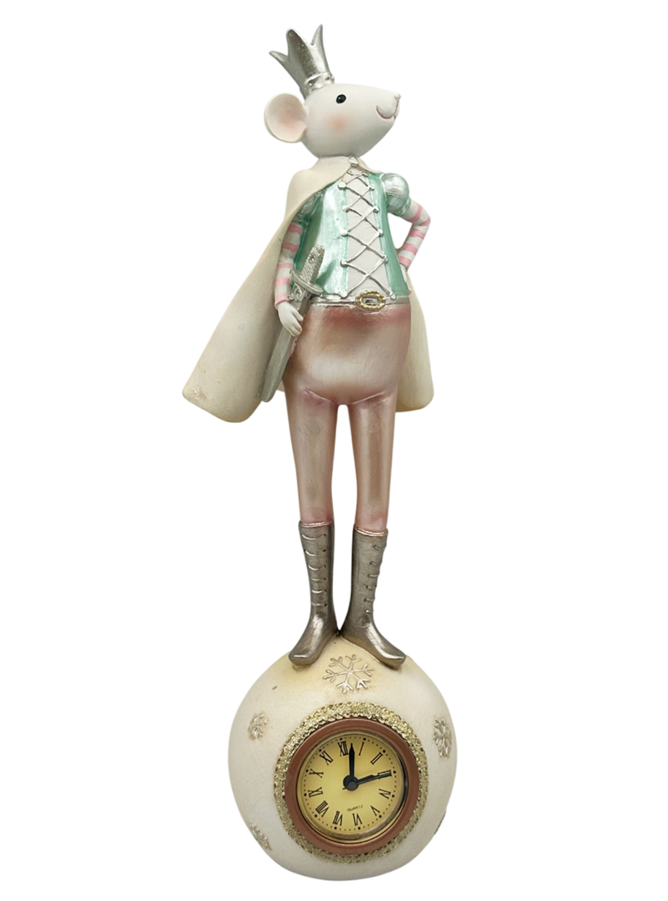 Figurină Șoricel Regal pe Glob cu Ceas – Decorațiune Elegantă de Crăciun