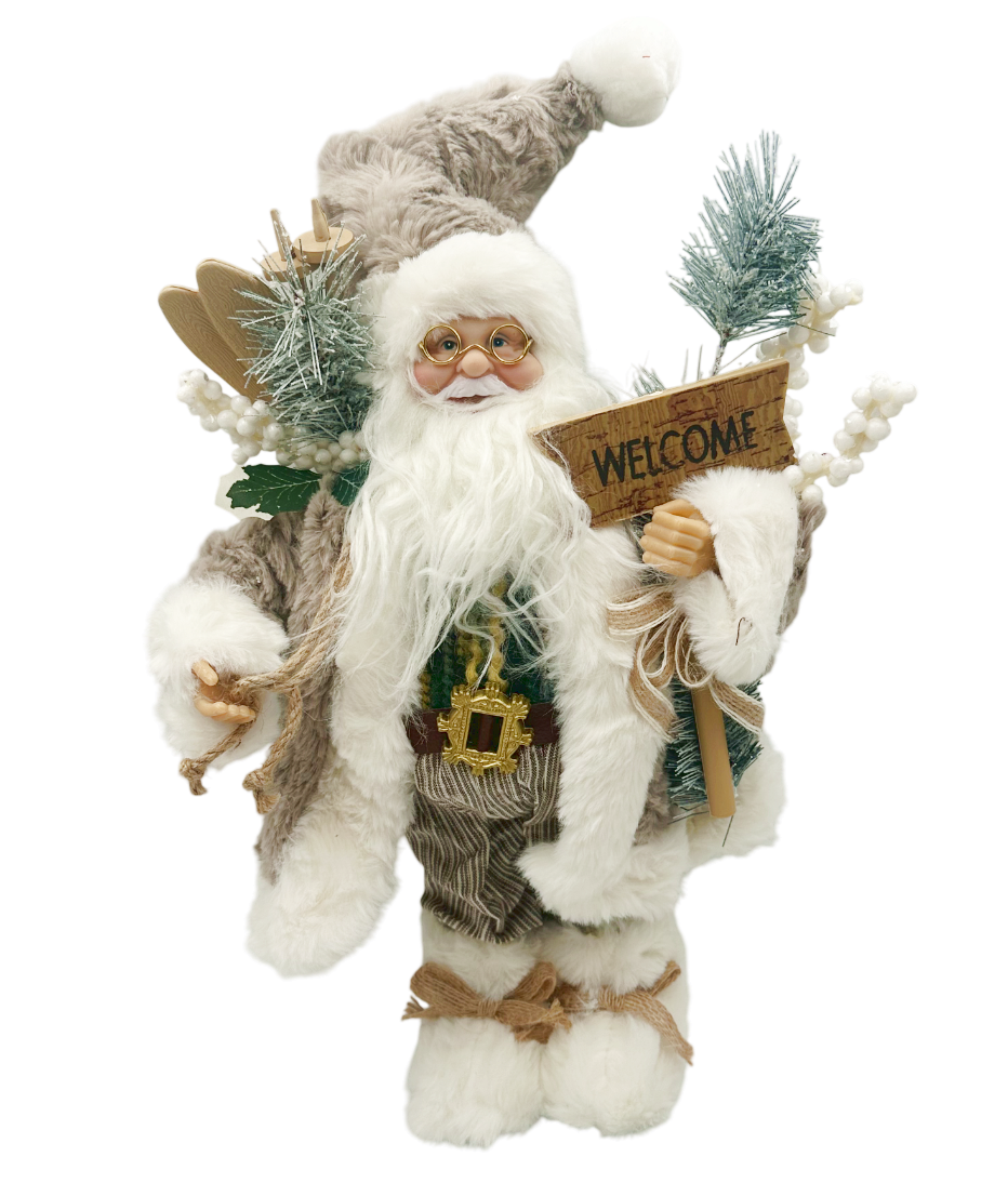 Transforma sarbatorile intr-o poveste plină de magie cu acest Moș elegant si simpatic - PAPO, imbracat în hainute de catifea bej si incaltat cu cizme cu blanita. Perfect pentru a fi amplasat langă brad, in orice colt al casei sau biroului, in sali de evenimente, pensiuni - Mosul transforma orice spatiu intr-un loc plin de bucurie si magie