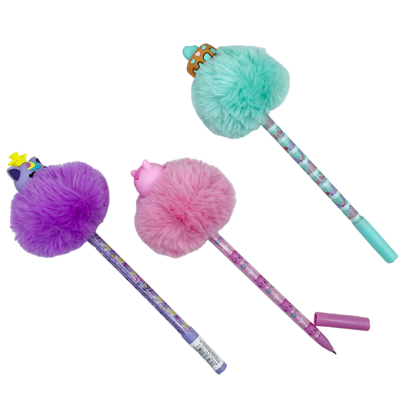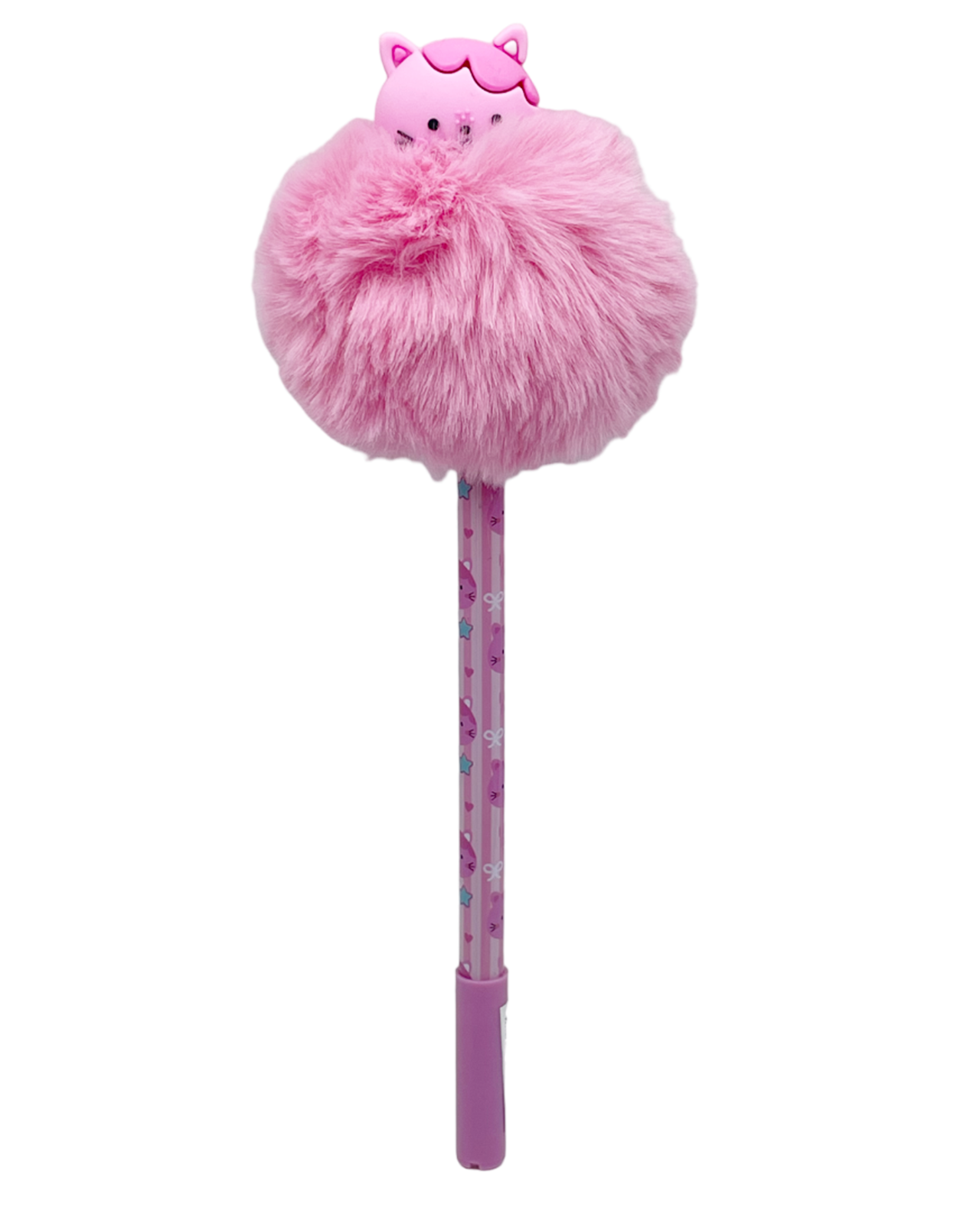 Pix amuzant decorat cu figurina pufoasa din material moale și detalii colorate din plastic.