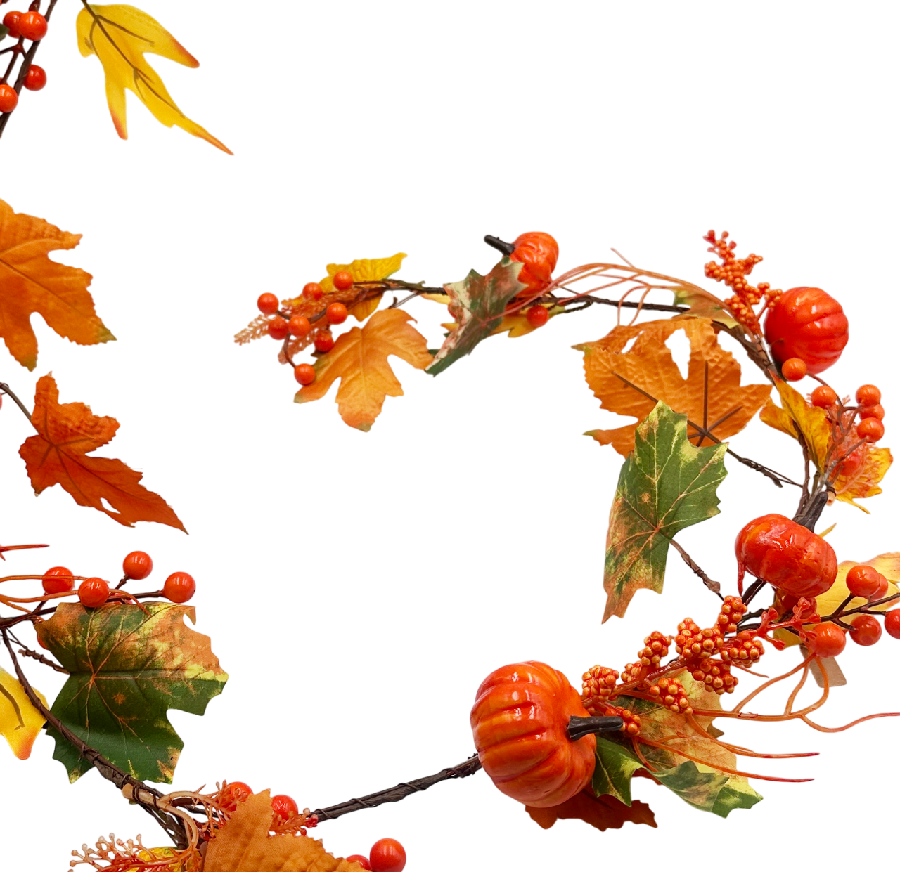 Printre frunze, se pot adauga mici accente decorative, cum ar fi fructe de padure artificiale, mini dovleci sau ghinde, care completeaza tema toamnei.