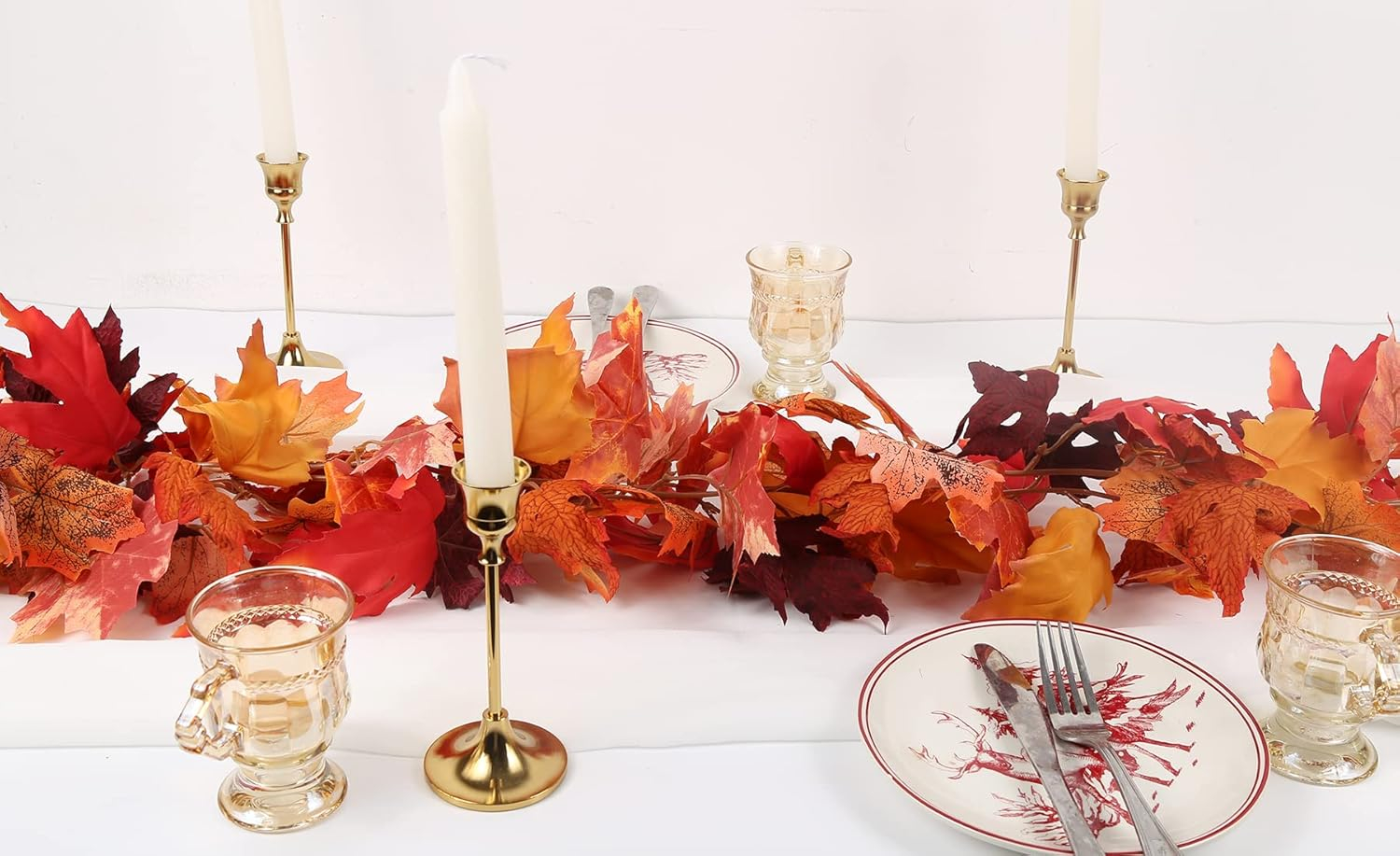 Printre frunze, se pot adauga mici accente decorative, cum ar fi fructe de padure artificiale, mini dovleci sau ghinde, care completeaza tema toamnei.