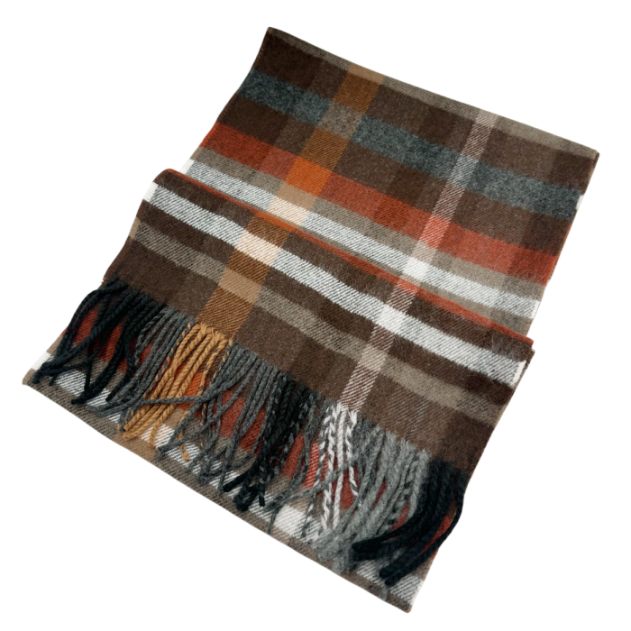 Esarfa cu franjuri ARTHUR - Model Carouri Maro-Caramiziu, 30x180cm