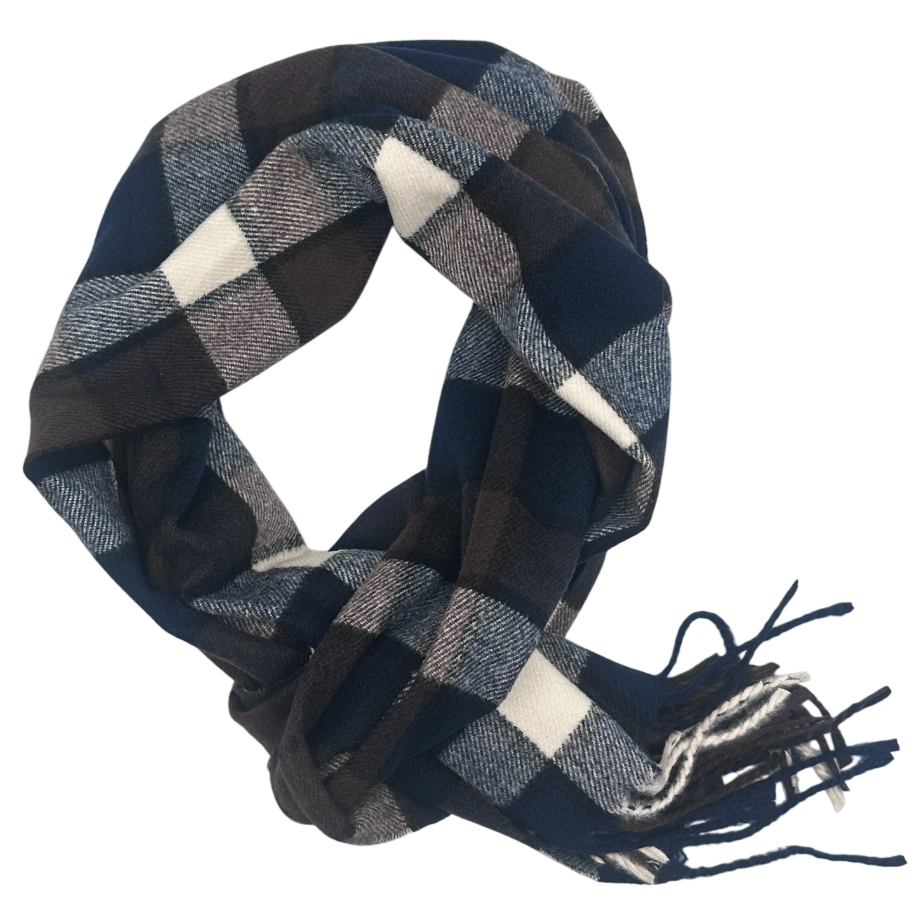 Esarfa cu franjuri Cashmere WILLIAM - Model Carouri Bleumarin, 30x180cm