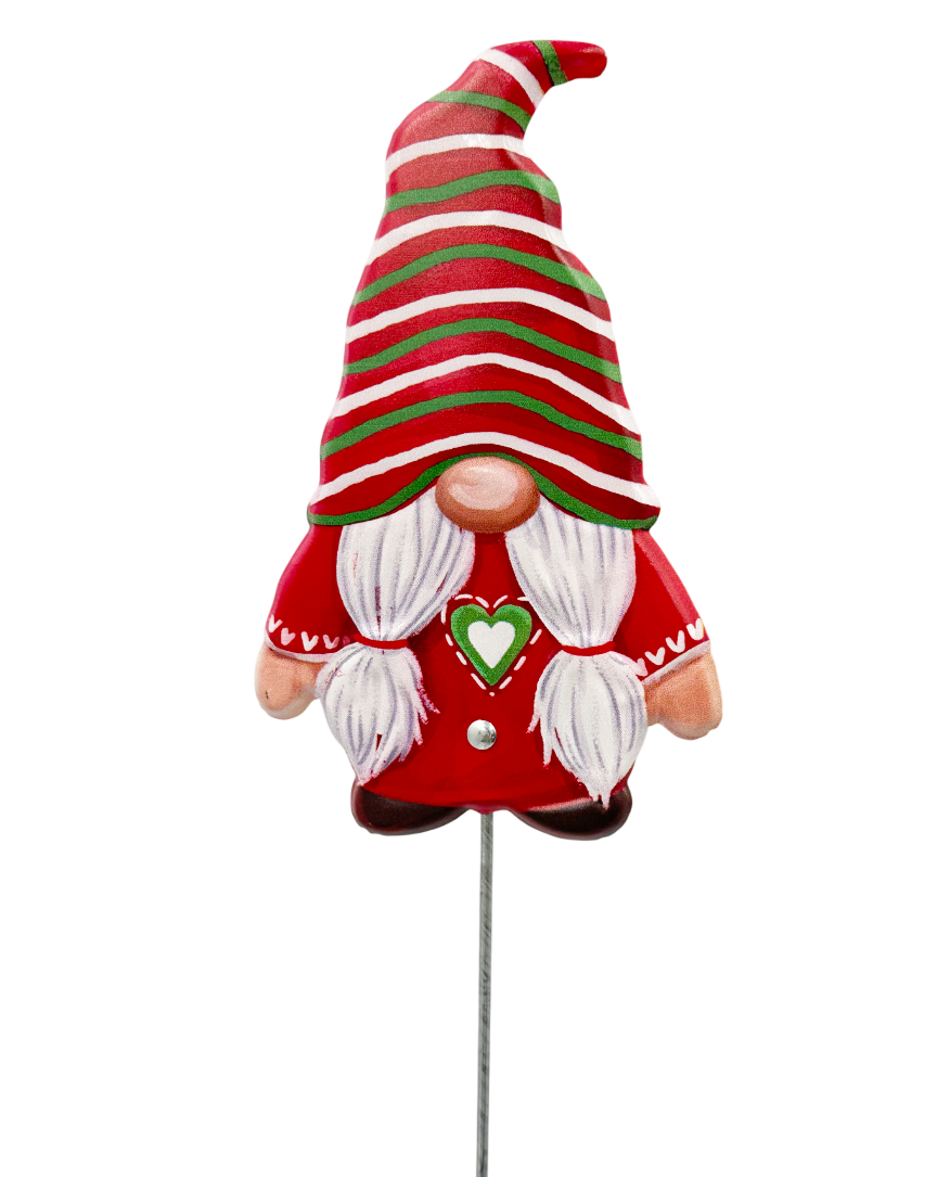 Figurină decorativă Gnom de Craciun pe bat, 7x15cm
