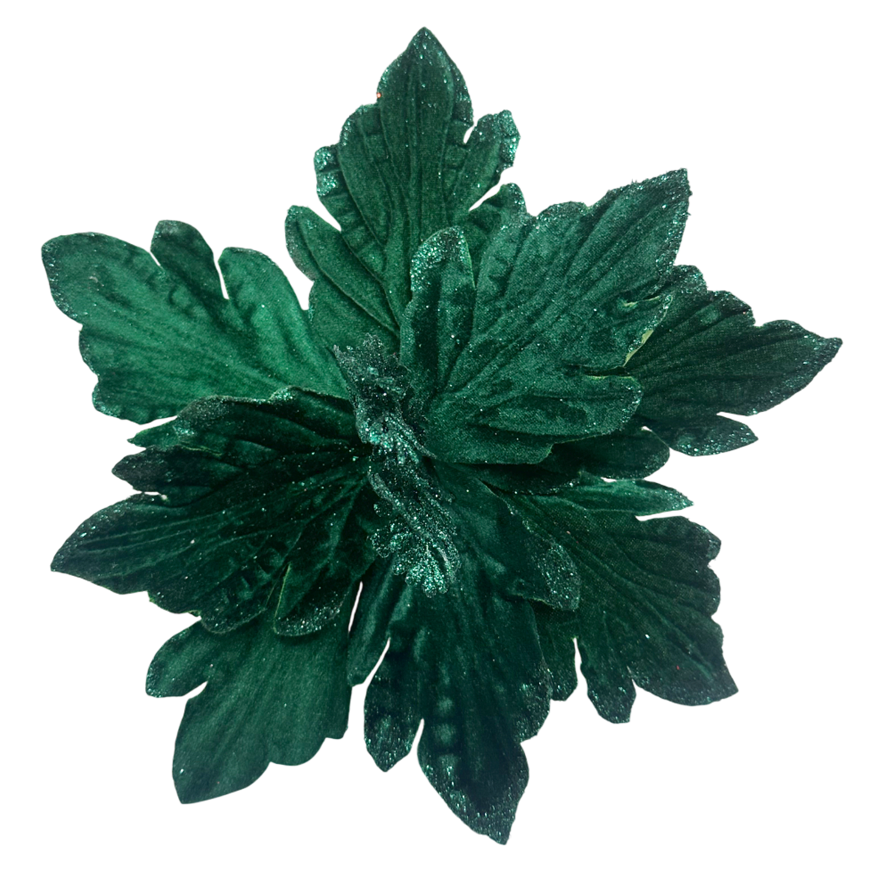 Completează decorul tău de sărbători cu o floare decorativă verde cu sclipici LOVELY, ideală pentru bradul de Crăciun, coronițe sau aranjamente de masă. Textura catifelată și nuanța profundă de verde adaugă un aer elegant și natural, iar accentele discrete de sclipici oferă o strălucire subtilă, perfectă pentru un decor de iarnă rafinat.