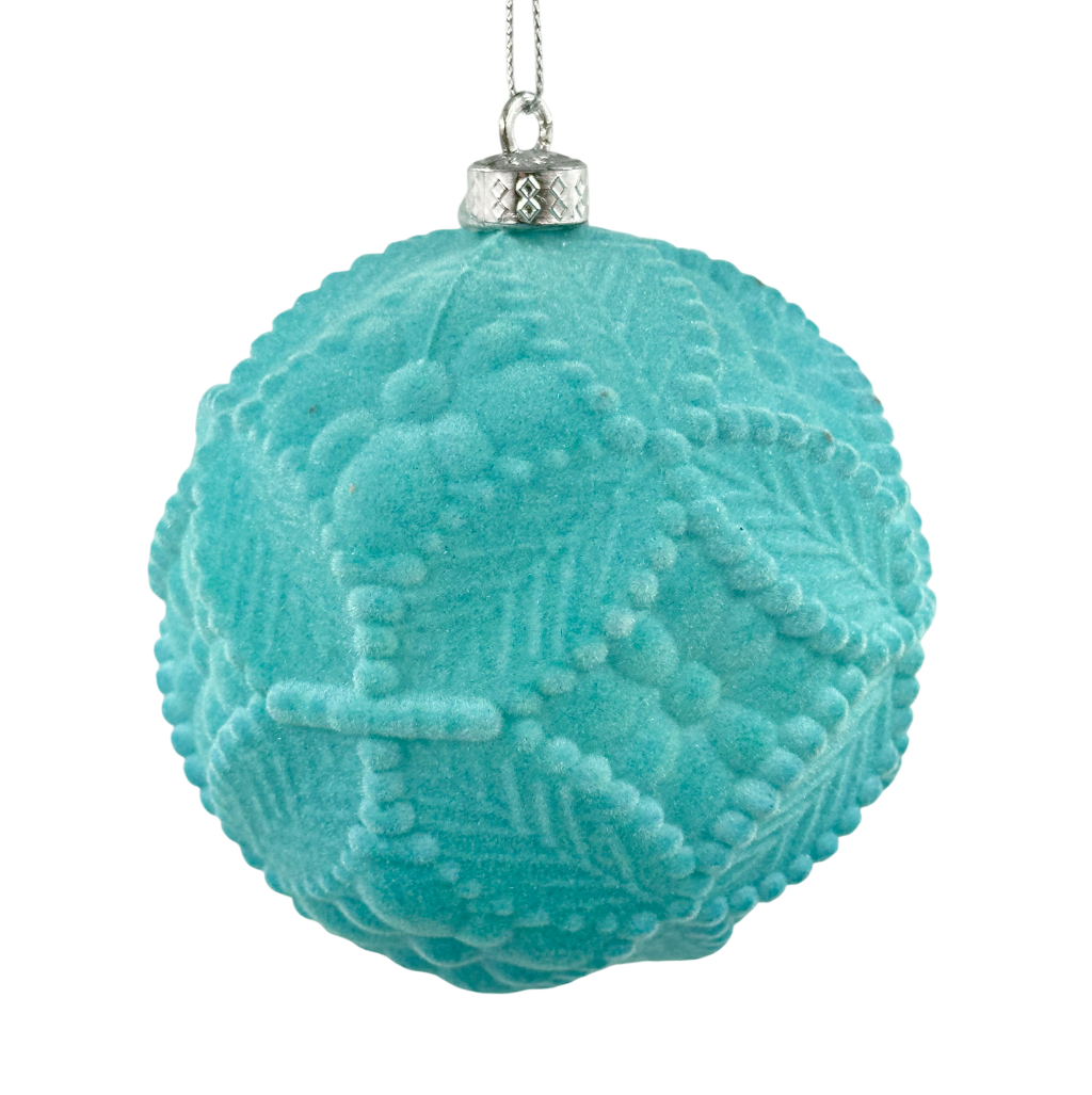 Ornament pentru brad sau aranjamente decorative de iarna Globul decorat cu model in relief - LUIS - are o textura catifelata si poate fi utilizat atât într-un decor clasic, cât și într-unul modern, pentru a adăuga accente festive.