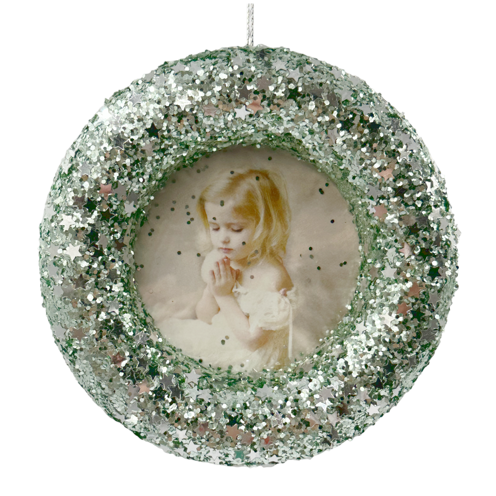 Glob de Craciun Rama foto SHINY, Verde menta, 12cm