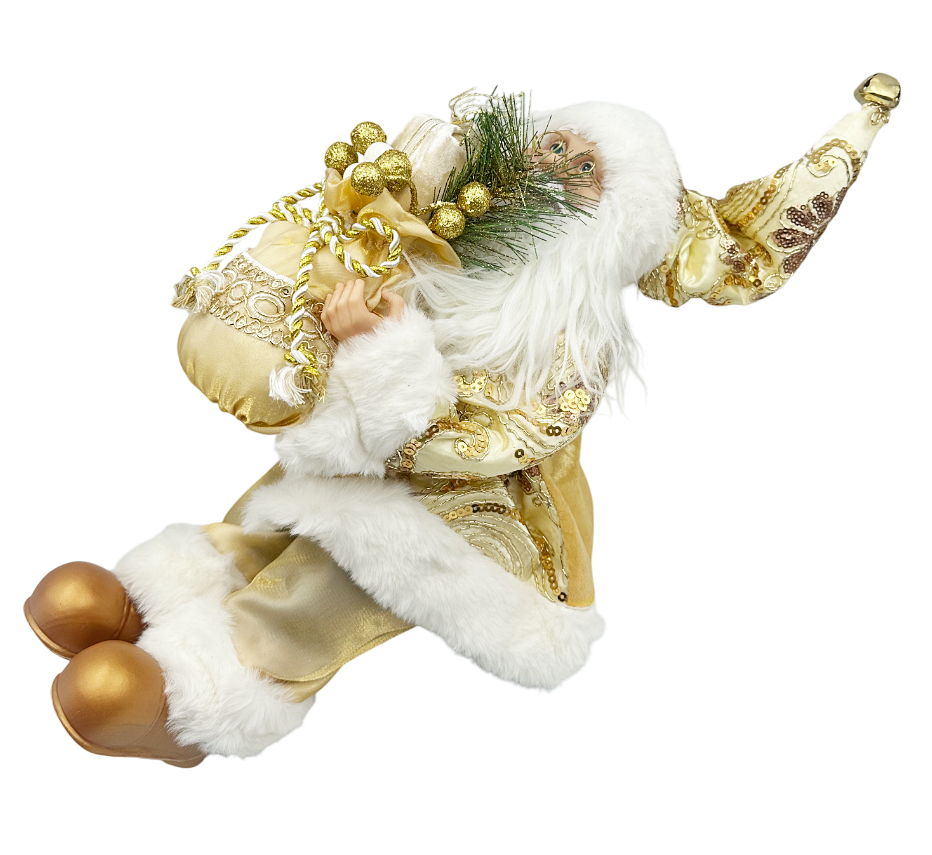 Transforma sarbatorile intr-o poveste plină de magie cu acest Moș elegant si simpatic - PLUMPY, imbracat în hainute de catifea aurie, pantaloni satinati si ghete aurii. Perfect pentru a fi amplasat langă brad, in orice colt al casei sau biroului, in sali de evenimente, pensiuni - Mosul transforma orice spatiu intr-un loc plin de bucurie si magie