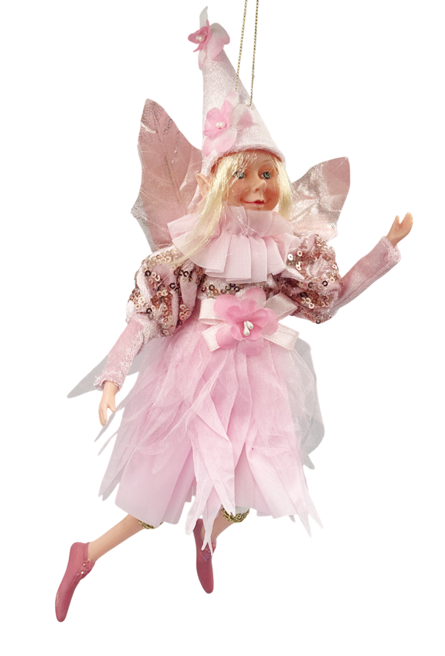 Adauga intre decoratiunile bradului tau de Craciun această elegantă zana, realizată din catifea roz si decorată cu paiete. Avand o inăltime de 30 cm, zana SARA aduce un plus de stralucire și eleganta decorului tau festiv.