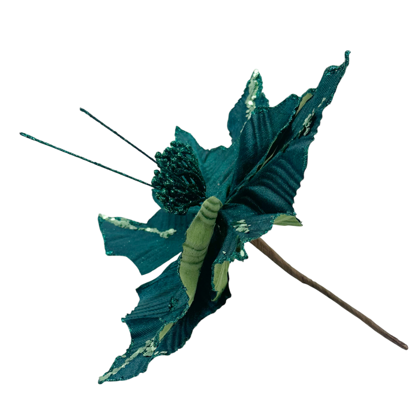 Decoratiune pentru brad sau aranjamente decorative de iarna Craciunita artificiala BEAUTY - din material textil - poate fi utilizată atât într-un decor clasic, cât și într-unul modern, pentru a adăuga accente festive.