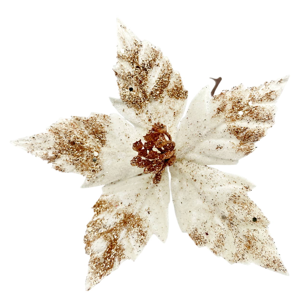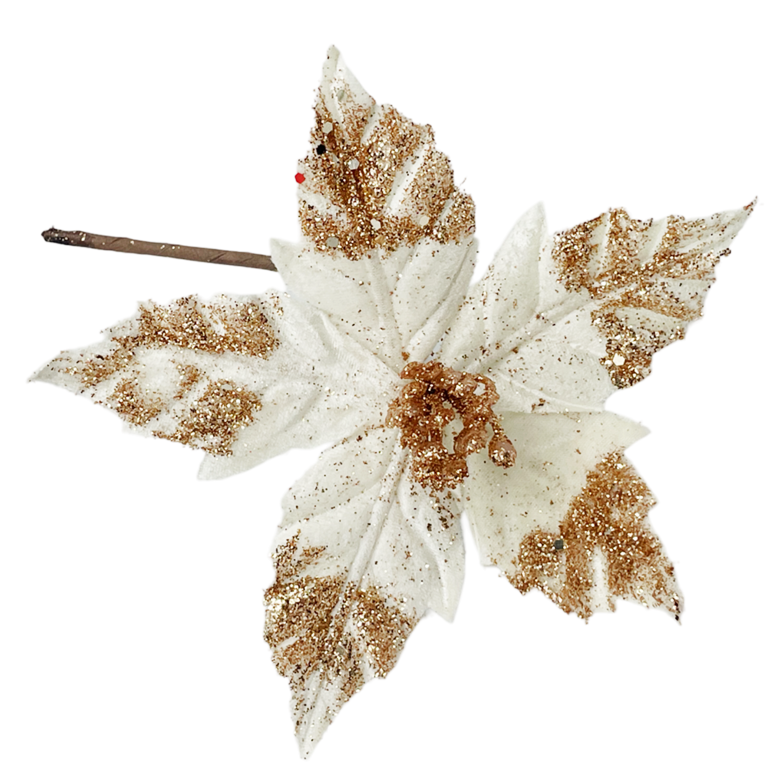 Decoratiune pentru brad sau aranjamente decorative de iarna Craciunita artificiala NOELLE - din material textil - poate fi utilizată atât într-un decor clasic, cât și într-unul modern, pentru a adăuga accente festive.