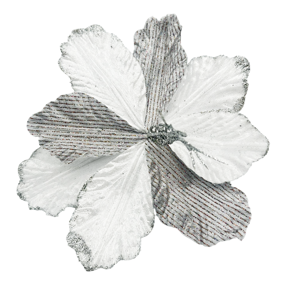 Decoratiune pentru brad sau aranjamente decorative de iarna Magnolia artificiala ALEGRIA - din material textil - poate fi utilizată atât într-un decor clasic, cât și într-unul modern, pentru a adăuga accente festive.