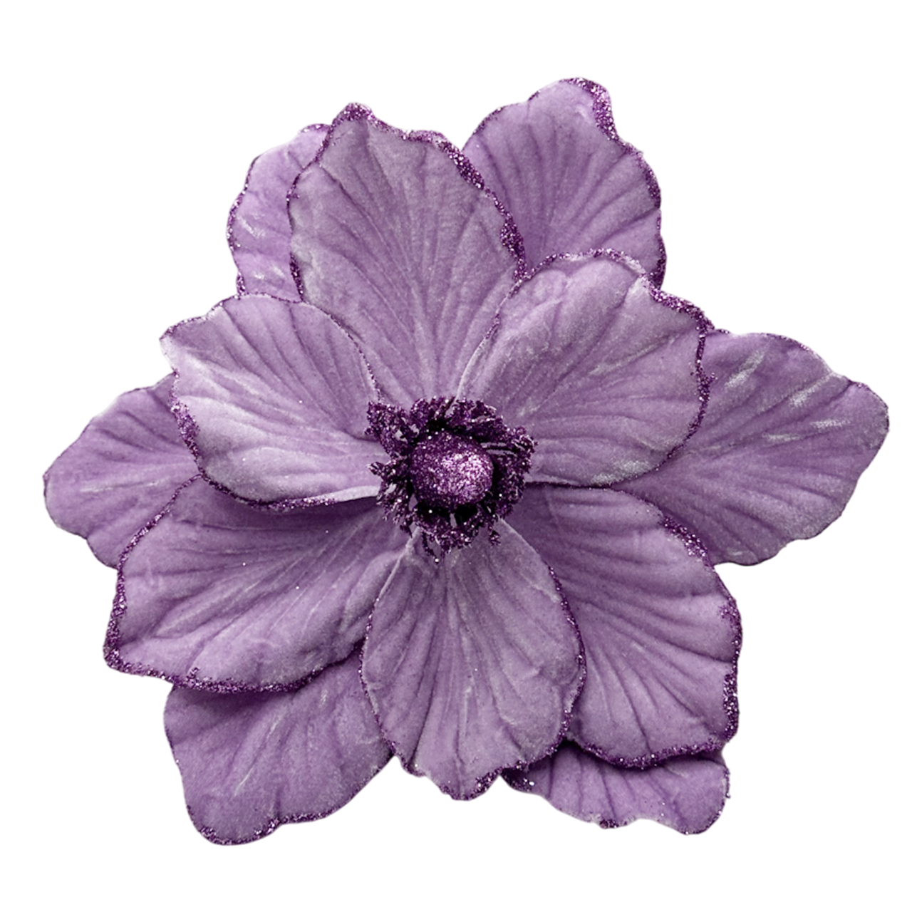Floarea decorativă EVERLY aduce un plus de eleganță oricărei decorațiuni de sărbători. Confecționată din material textil catifelat, în nuanțe de violet pastel, floarea este accentuată pe margini cu sclipici fin ce reflectă lumina într-un mod delicat.