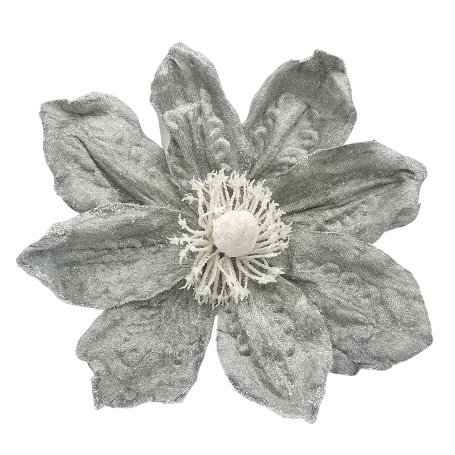 Ornament brad Magnolie GRACE, Gri argintiu, 22cm