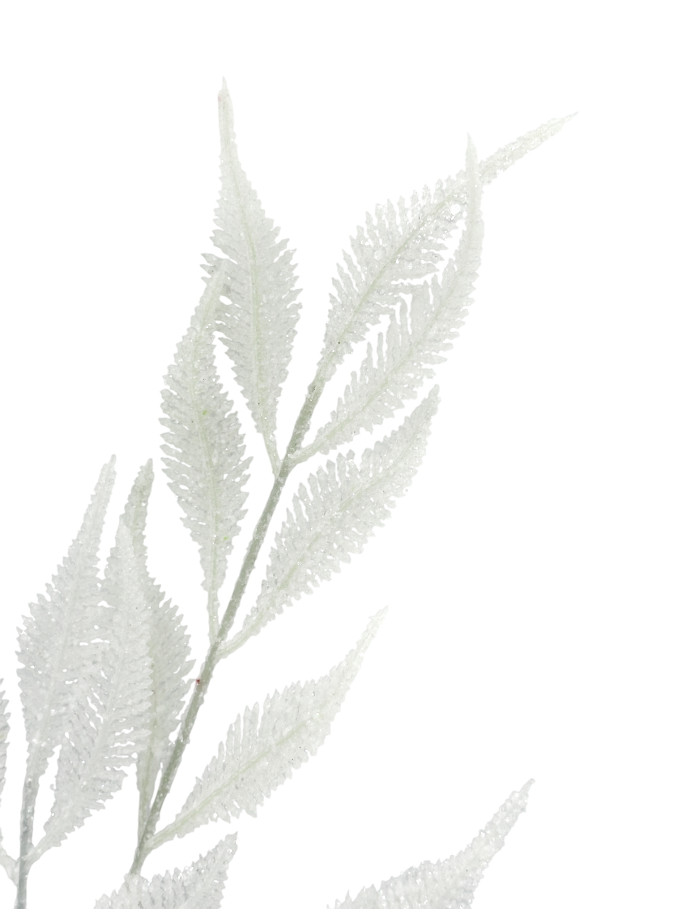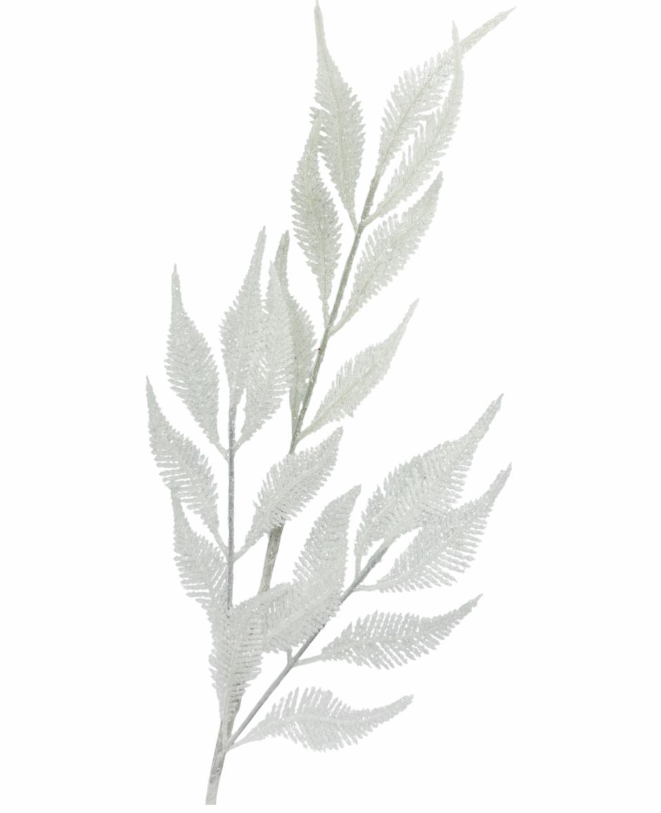 Ramură decorativă elegantă de culoare alba, acoperită cu sclipici fin pentru un efect strălucitor.