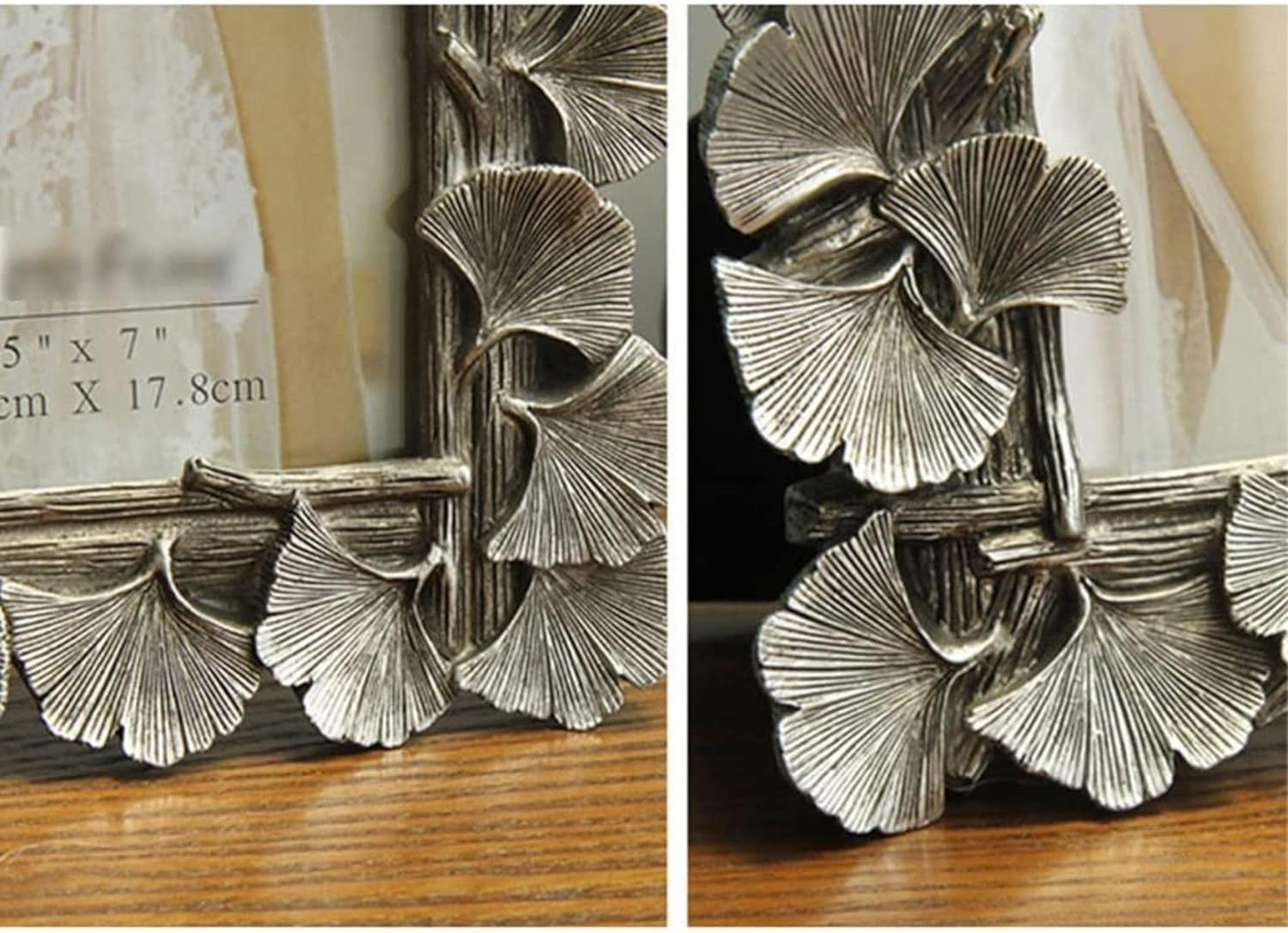Rama argintie din polirasina decorata cu frunze in relief si finisata cu aspect vintage elegant