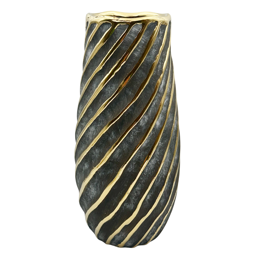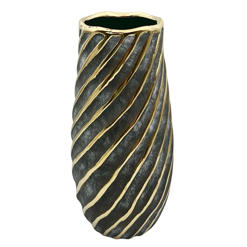 Vază decorativă ceramica - Gri inchis cu Accente Aurii