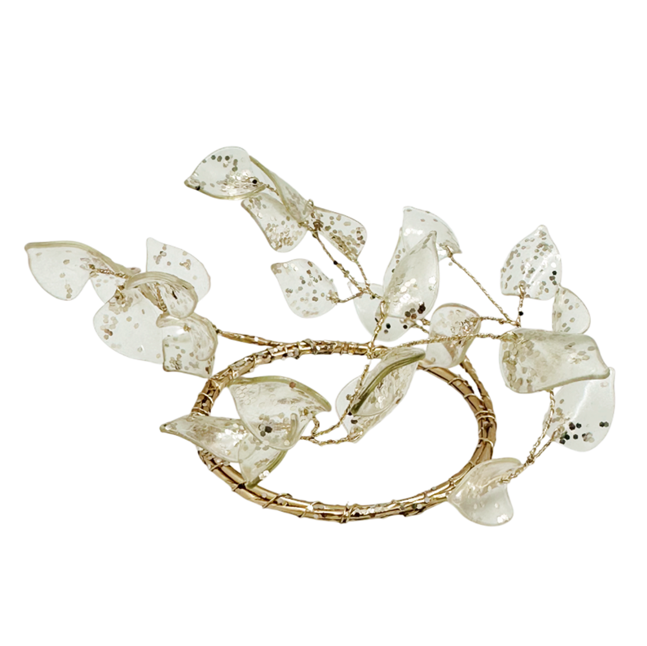 Coronița decorativă GLAM impresionează prin eleganța detaliilor sale fine. Frunzele transparente cu reflexii aurii creează un joc delicat de lumină, aducând o notă rafinată oricărui decor de Crăciun. Poate fi folosită ca accent pentru brad, pe masă, în jurul unei lumânări sau ca decor de perete. O alegere strălucitoare pentru un decor modern și festiv.