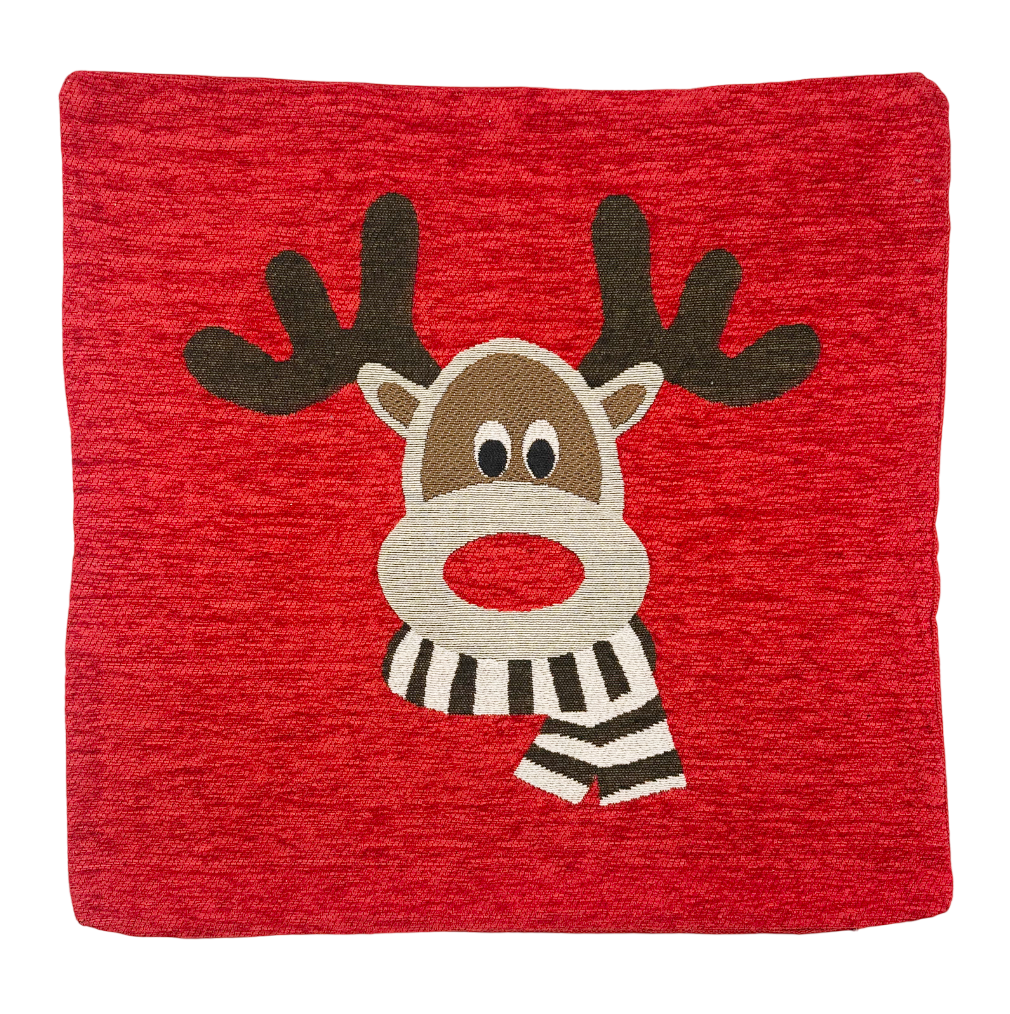Față de pernă decorativă rosie cu imprimeu de Crăciun - cap de ren