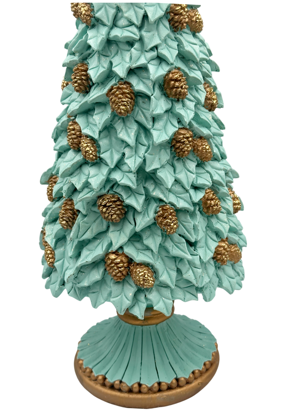 Baza turcoaz-auriu sculptată oferă stabilitate și un contrast plăcut, completând perfect aspectul sărbătoresc.