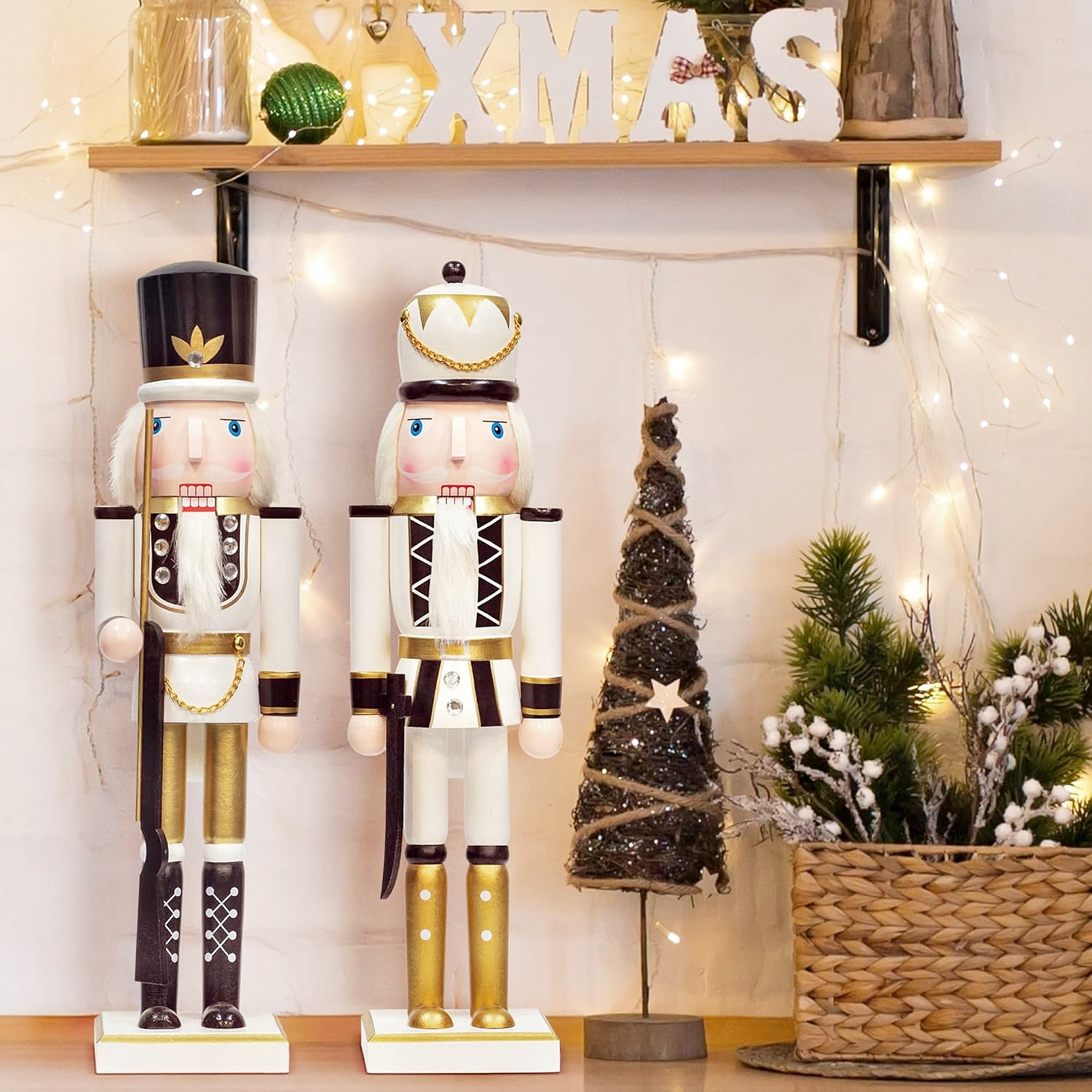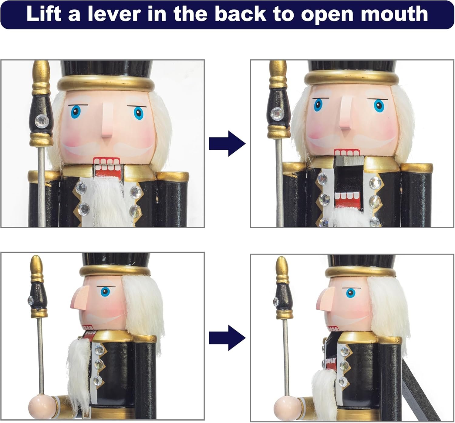 Figurina Craciun - Spargatorul de Nuci CHARLES, Negru/ Alb, 38cm