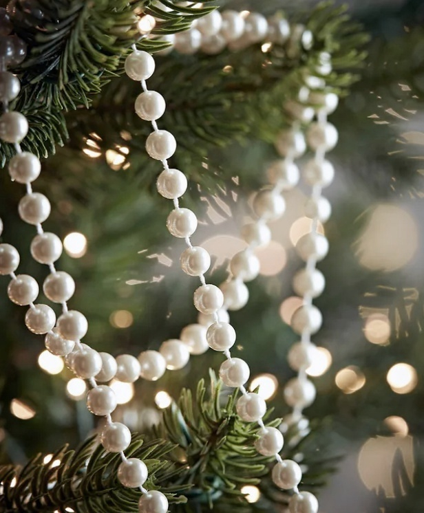 Ghirlandă elegantă cu perle albe, ideală pentru împodobirea bradului de Crăciun, a coronițelor sau a aranjamentelor de sărbătoare. Cu o strălucire delicată și un aspect sofisticat, această ghirlandă adaugă o notă de rafinament oricărui decor festiv. Poate fi folosită și pentru decorarea meselor, a ferestrelor sau a pachetelor de cadou.