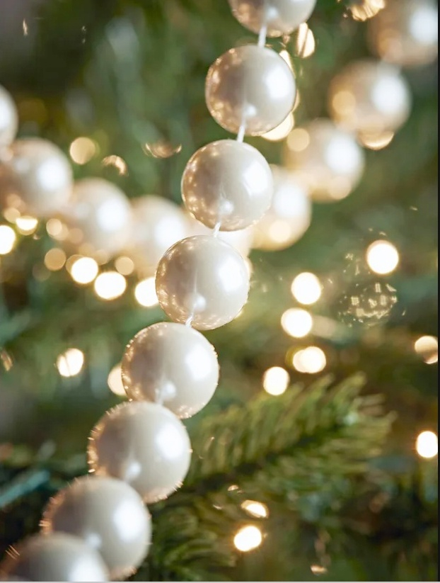 Ghirlandă elegantă cu perle albe, ideală pentru împodobirea bradului de Crăciun, a coronițelor sau a aranjamentelor de sărbătoare. Cu o strălucire delicată și un aspect sofisticat, această ghirlandă adaugă o notă de rafinament oricărui decor festiv. Poate fi folosită și pentru decorarea meselor, a ferestrelor sau a pachetelor de cadou.