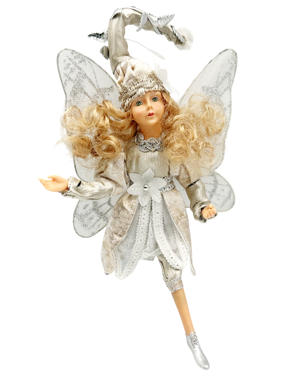 Adauga intre decoratiunile bradului tau de Craciun această elegantă zana, decorată cu glitter sampanie/ argintiu. Avand o inăltime de 30 cm, zana FAY aduce un plus de stralucire și eleganta decorului tau festiv.