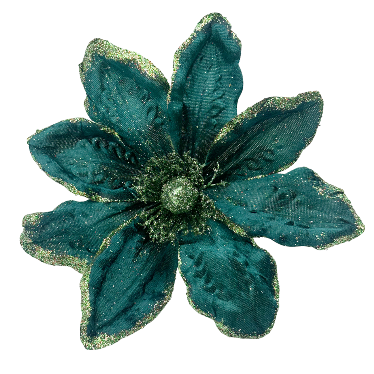 Decoratiune pentru brad sau aranjamente decorative de iarna Magnolia artificiala GRACE - din material textil - poate fi utilizată atât într-un decor clasic, cât și într-unul modern, pentru a adăuga accente festive.