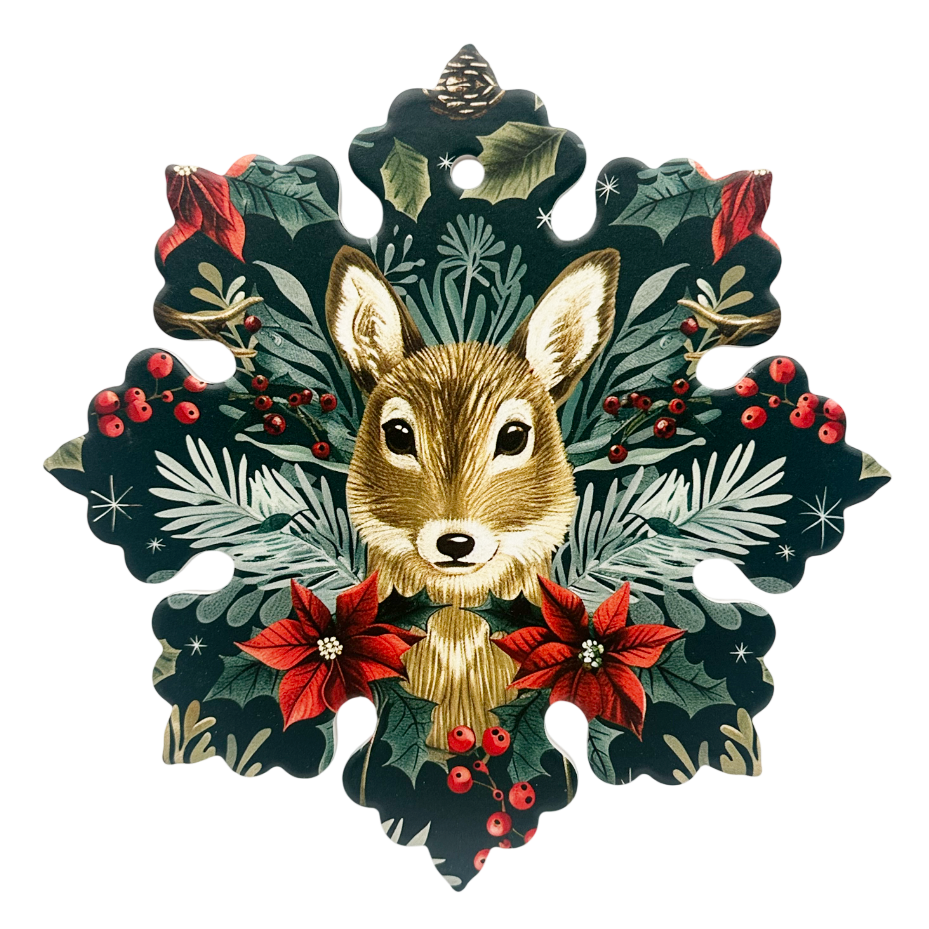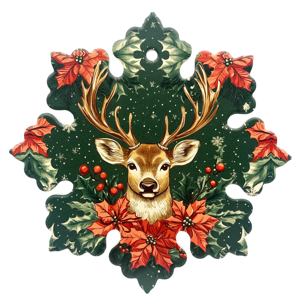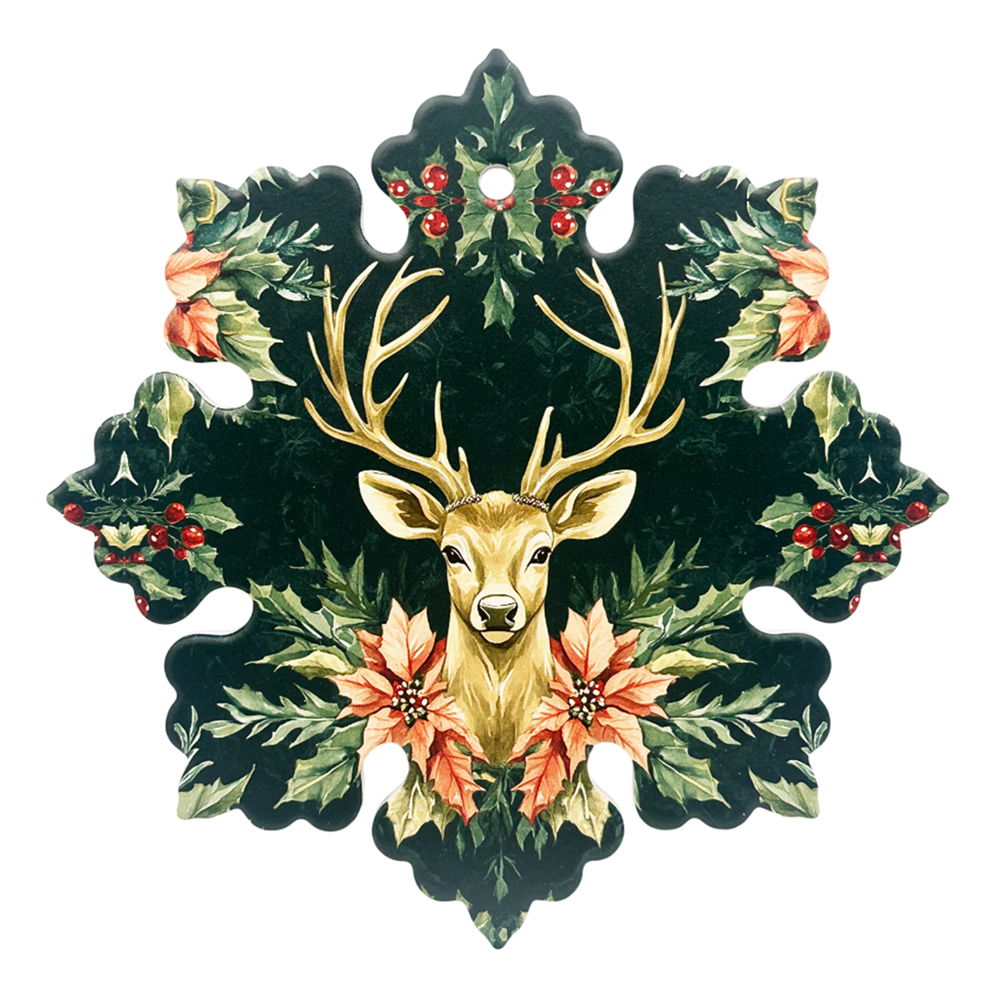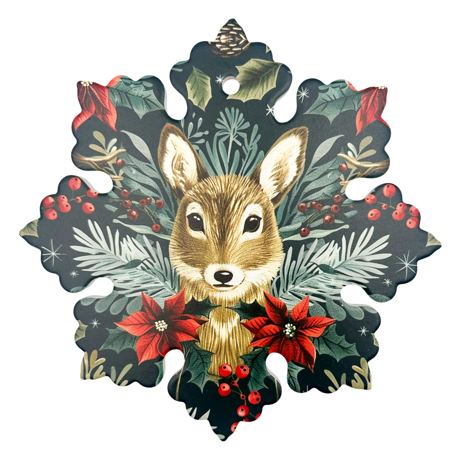 Suport pentru vase fierbinți, cu design festiv de Crăciun și ilustrație adorabilă cu căprioară. Fabricat din material rezistent, protejează masa și aduce un plus de farmec decorului tău de sărbători.