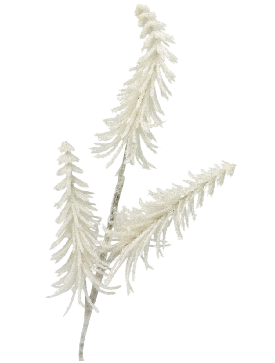 Ramură decorativă artificială cu aspect de brad acoperit de zăpadă, perfectă pentru a adăuga o notă elegantă și naturală decorurilor de iarnă. Ideală pentru aranjamente florale, coronite, vaze decorative sau ca ornament suplimentar pentru bradul de Crăciun.