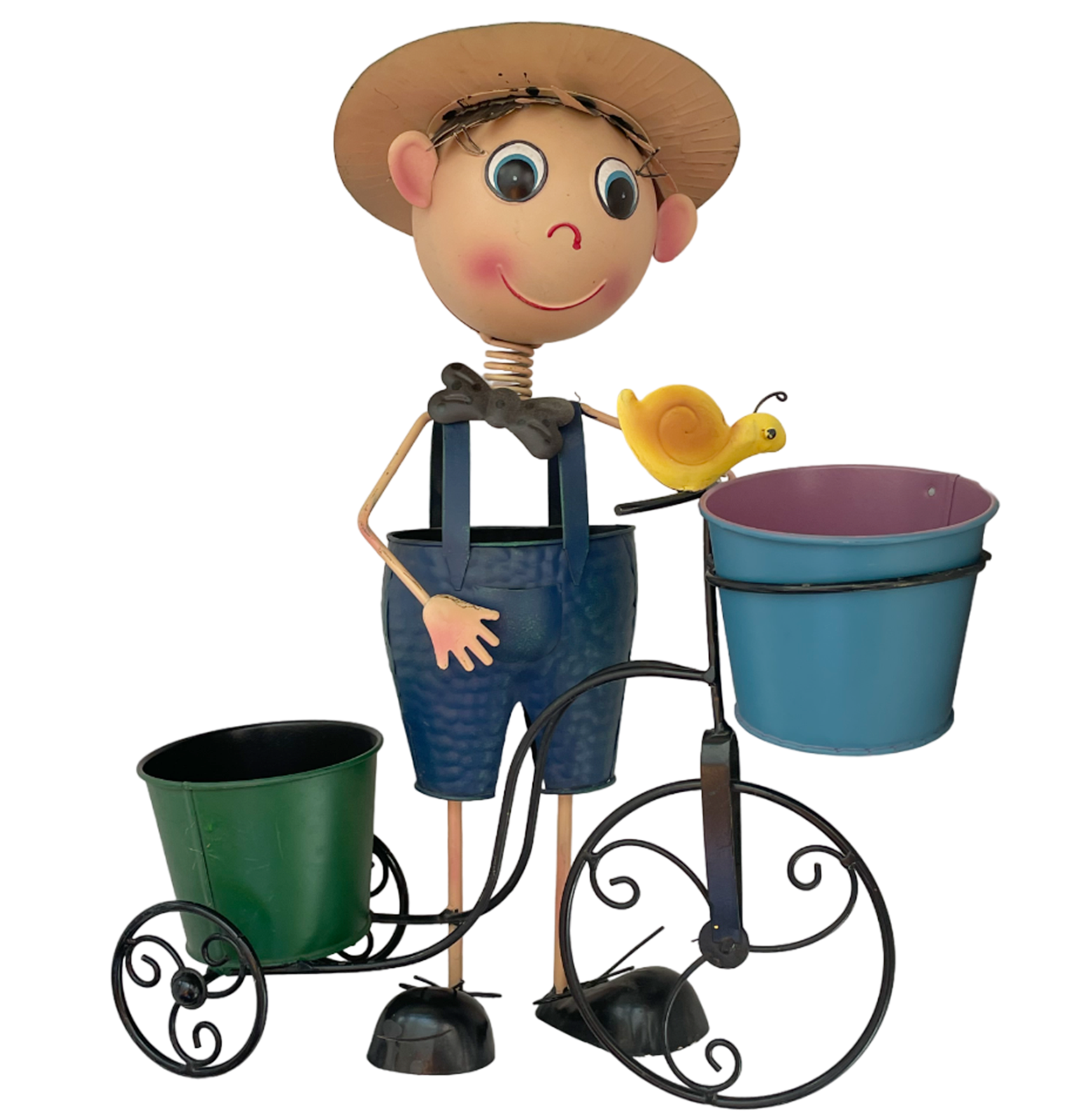 Decoatiune de gradina baiat cu bicicleta  - suport ghivece pentru flori
