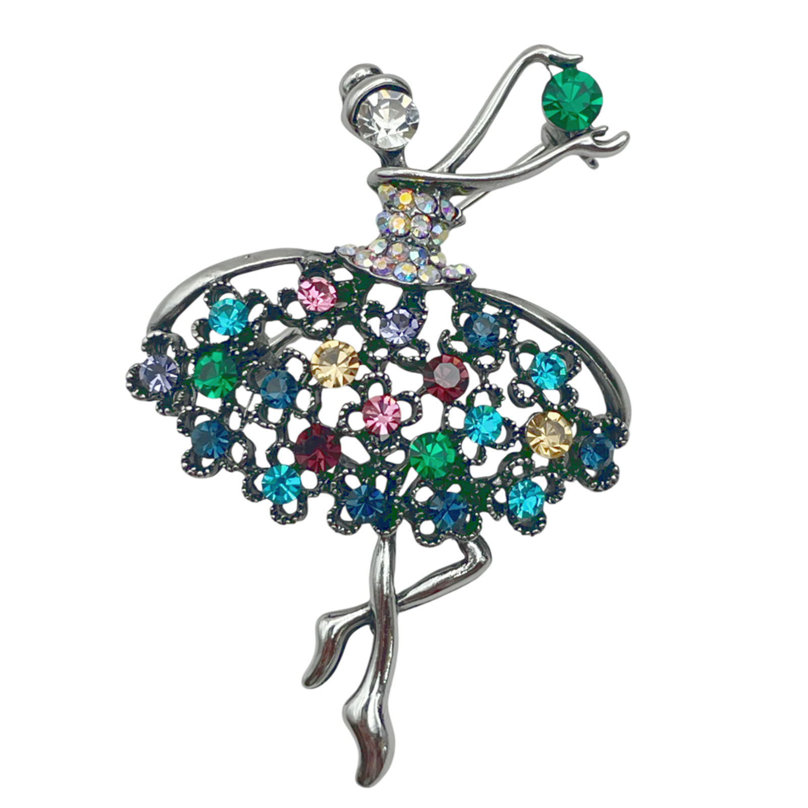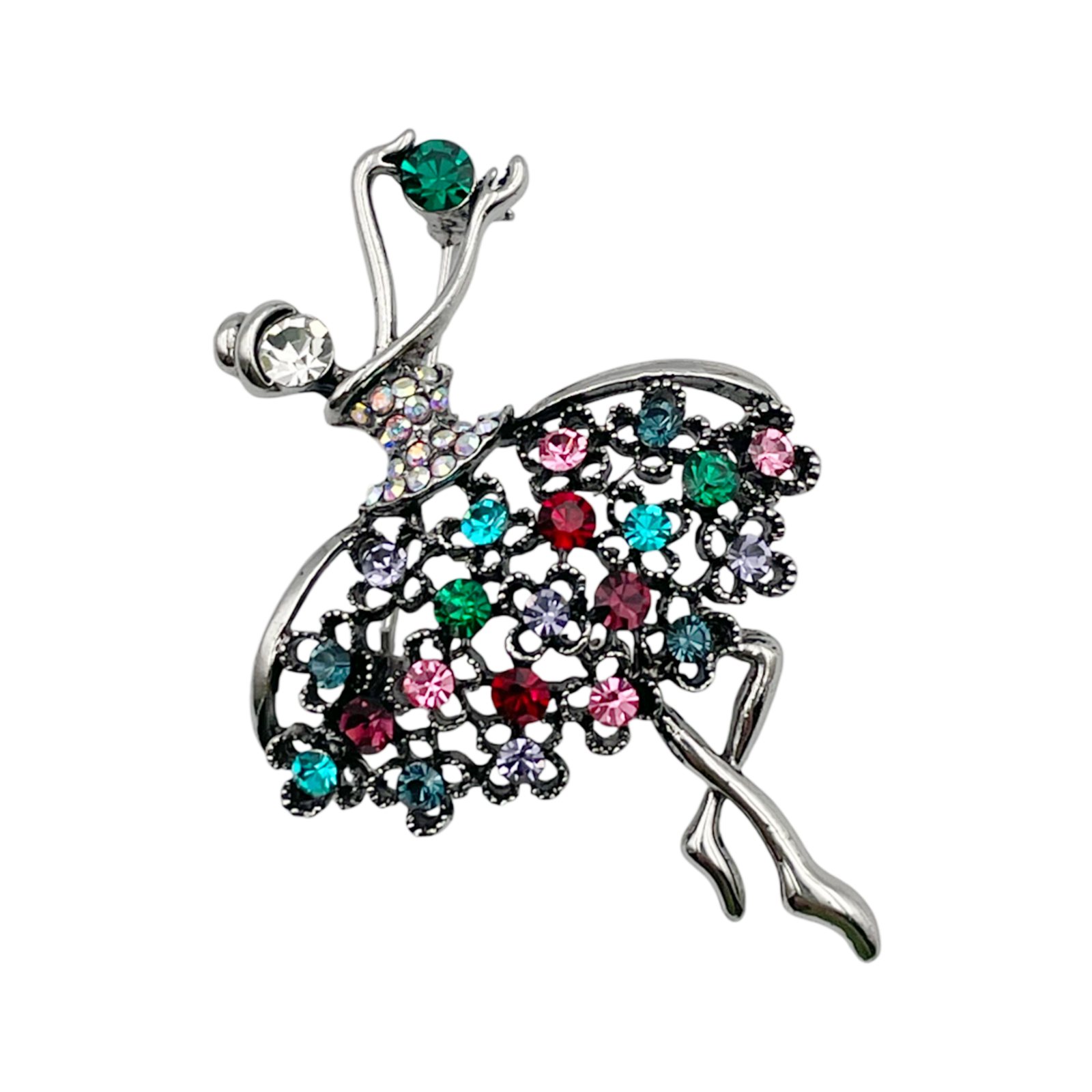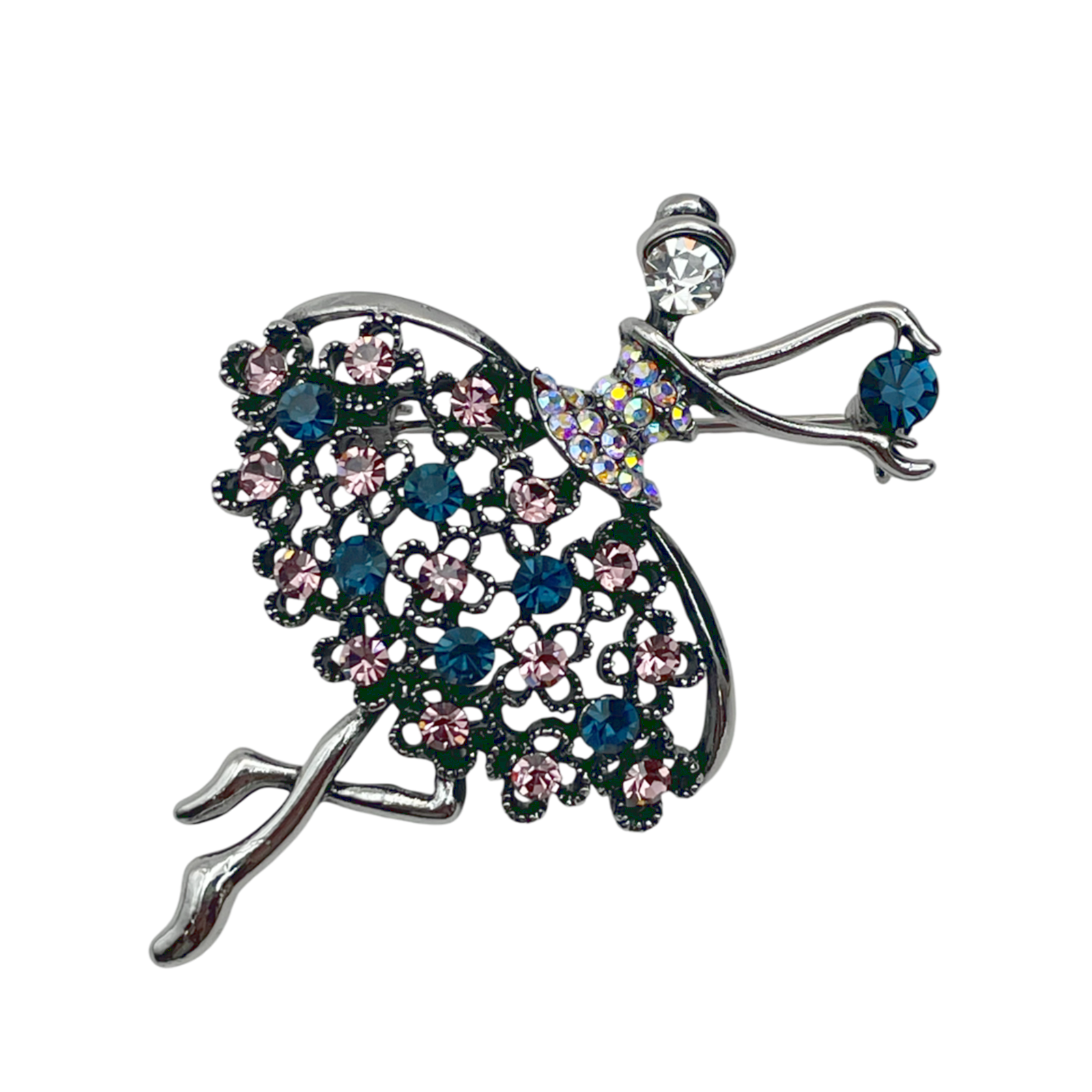 Brosa Balerina cu strasuri AYLA, Argintiu, 4cm