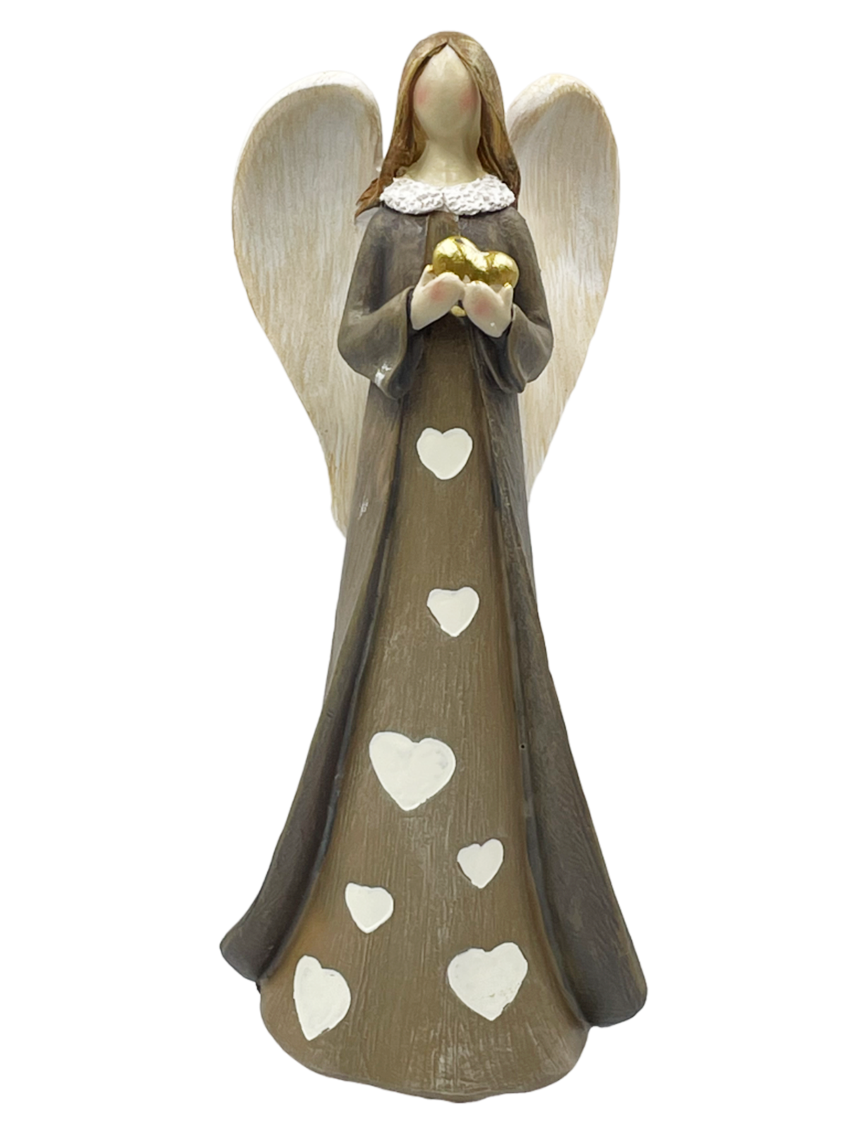 Inger decorativ CAROLINE cu inimioara, Maro, 21cm