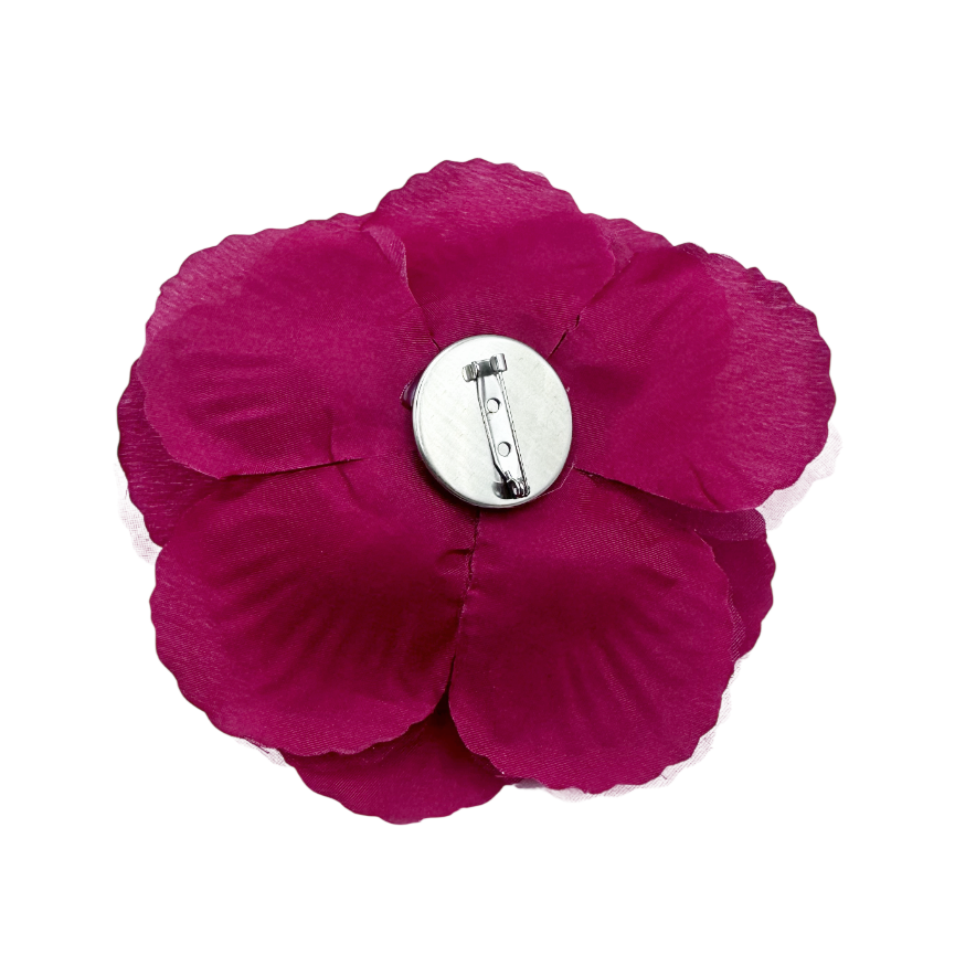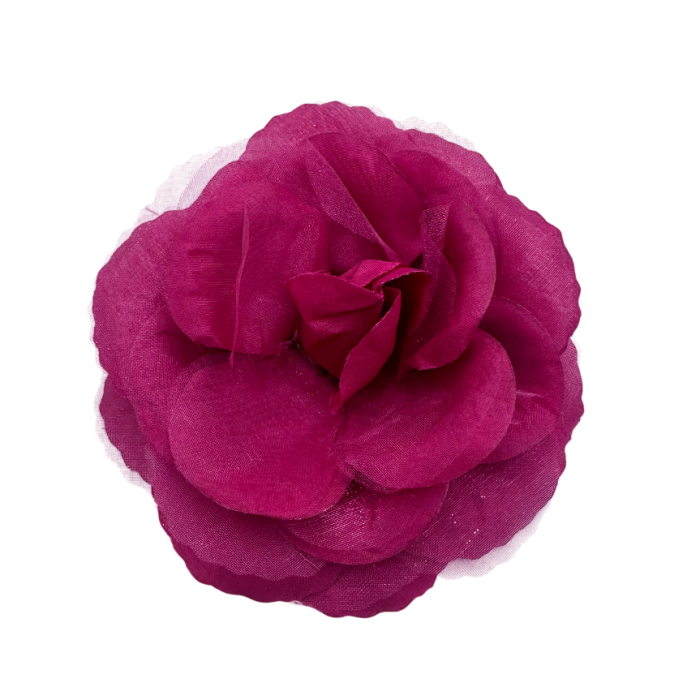 Broșa floare este realizată din material textil fin, într-o nuanță intensa de rosu-bordo, inspirată de forma naturală a unei flori deschise. Ușoară și elegantă, adaugă un accent luminos și feminin ținutelor de zi sau de ocazie.
