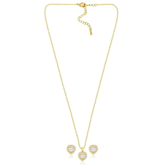 Elegant și rafinat, acest set de bijuterii cu inimă din zirconiu este alegerea perfectă pentru un cadou special. Setul include un colier delicat cu pandantiv în formă de inimă și o pereche de cercei asortați, creați pentru a oferi un aspect armonios și sofisticat.