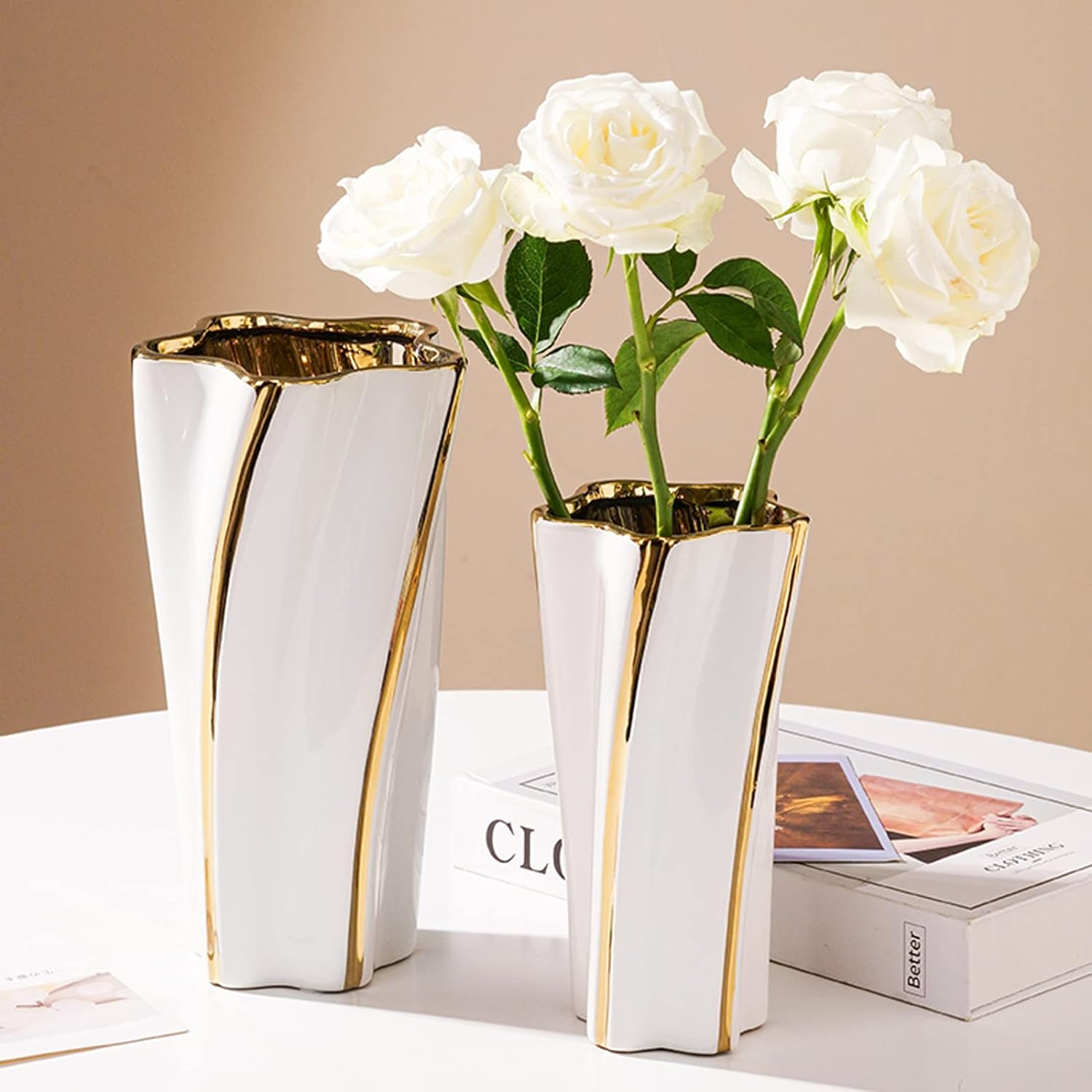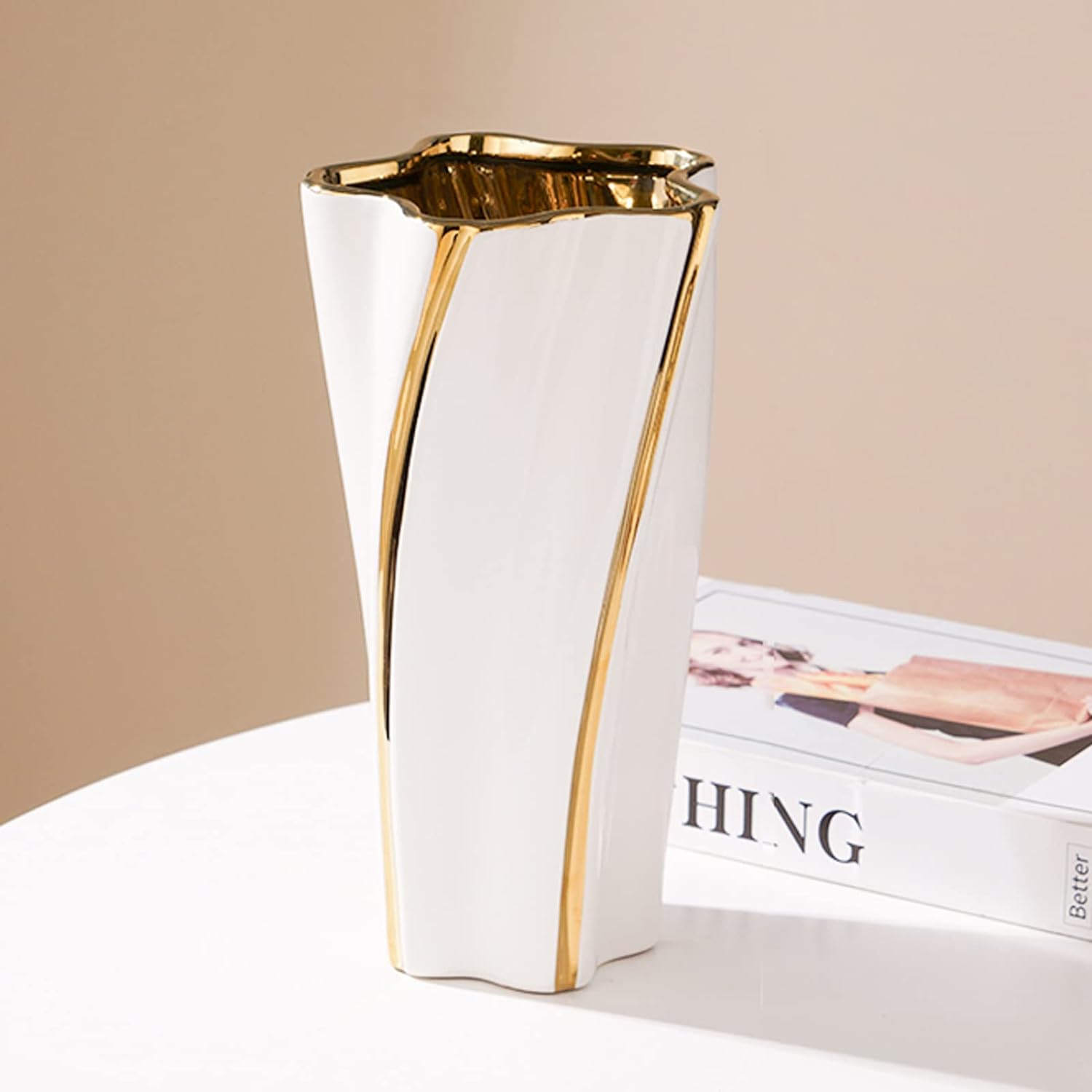 Vaza ceramica NOVELL, Alb-auriu, 24cm