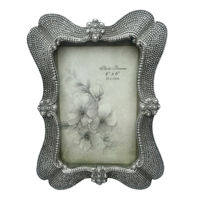 Completează decorul casei tale cu această ramă foto vintage în nuanță argintie, caracterizată printr-un design sofisticat și o textură decorativă fină. Detaliile reliefate și forma elegantă oferă un aspect rafinat, perfect pentru a pune în valoare fotografiile tale preferate.