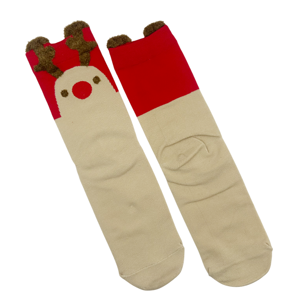 Fiecare pas devine mai vesel cu aceste șosete de Crăciun cu renul cel simpatic și nasul lui roșu strălucitor! Realizate dintr-un material moale și plăcut la atingere, oferă confort și o doză zdravănă de bucurie în zilele friguroase de iarnă. Sunt perfecte pentru a fi purtate acasă, la birou sau pentru a fi oferite cadou unei persoane dragi. Cu ele, spiritul Crăciunului te însoțește la fiecare pas!