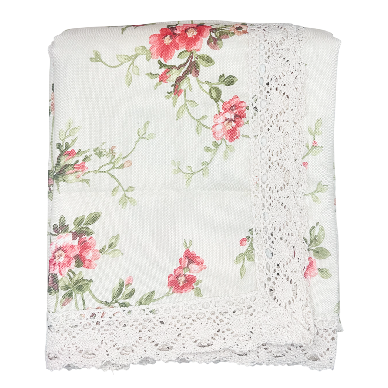 Creează o atmosferă caldă și primitoare cu această față de masă crem în stil vintage, decorată cu flori delicate în nuanțe de roz și verde pastel. Designul fin și aerisit aduce un plus de eleganță discretă, fiind ideal pentru mese de familie sau decoruri romantice cu aer englezesc.