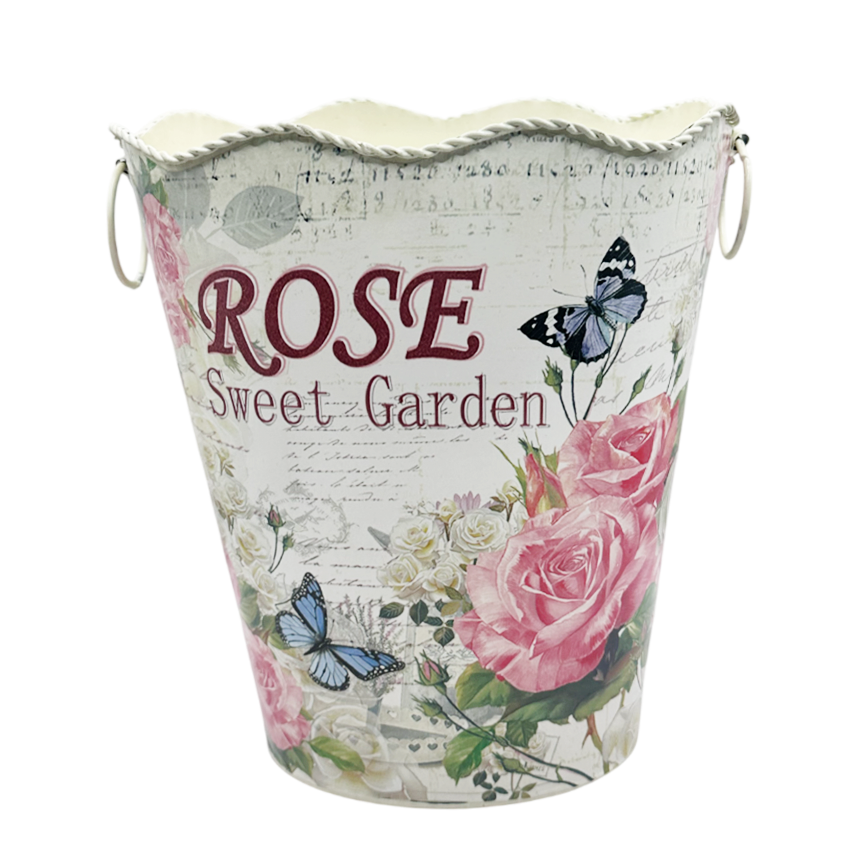 Ghiveciul decorativ „Rose Garden” aduce un farmec aparte prin designul său romantic, inspirat din grădinile vintage. Decorat cu trandafiri delicati și fluturi, pe un fundal cu texturi elegante, acest obiect transformă orice colț într-un spațiu plin de rafinament.