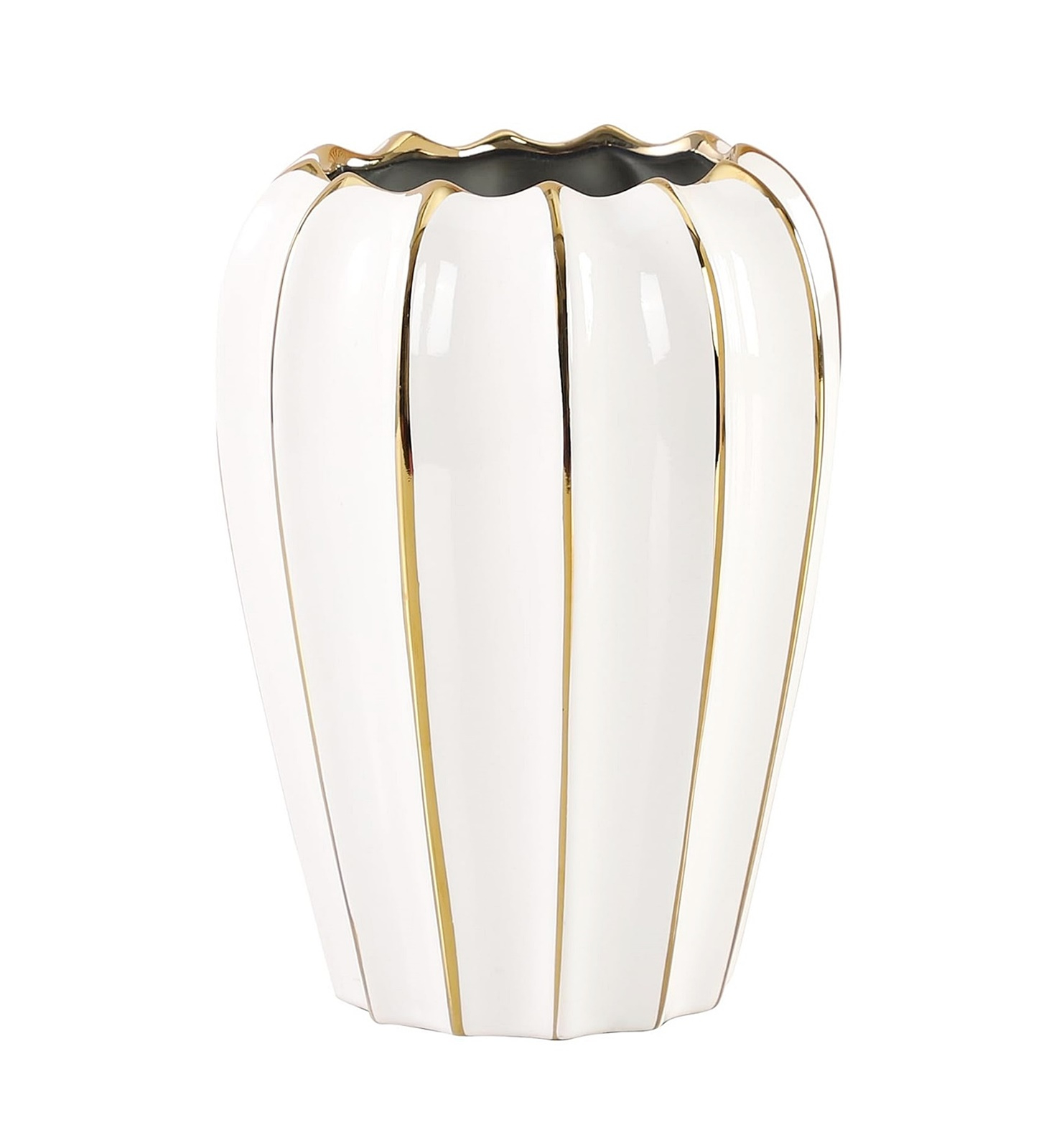 Vaza ceramica REGINALD, Alb/ Auriu, 19cm
