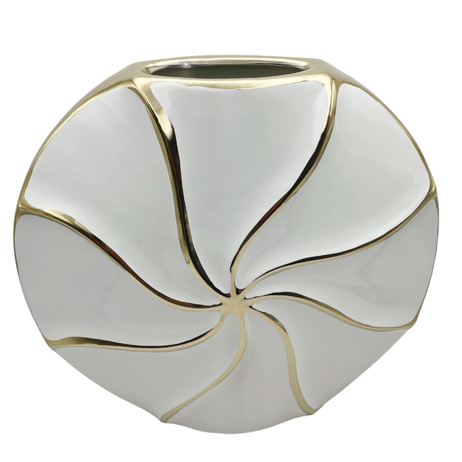 Vaza ceramica SELENA, Alb/ Auriu, 24cm