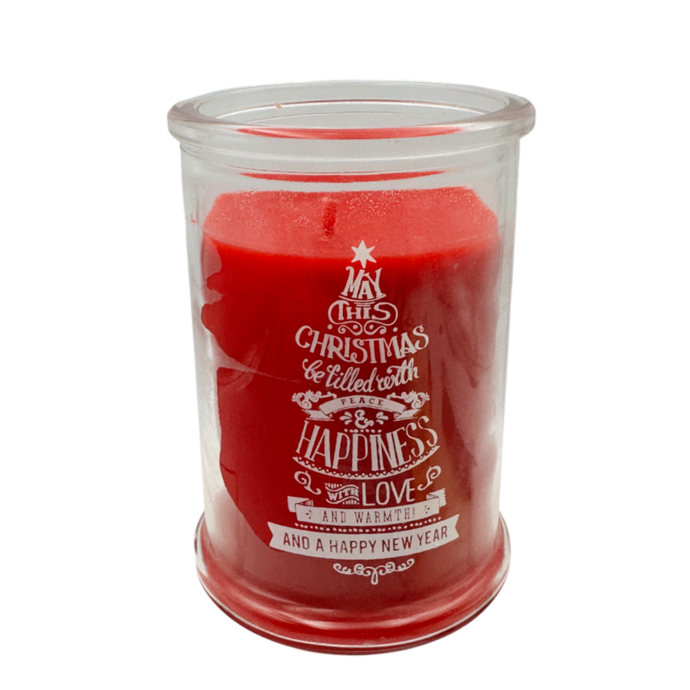 Lumânare parfumată rosie de Crăciun - în pahar de sticlă - CHRISTMAS