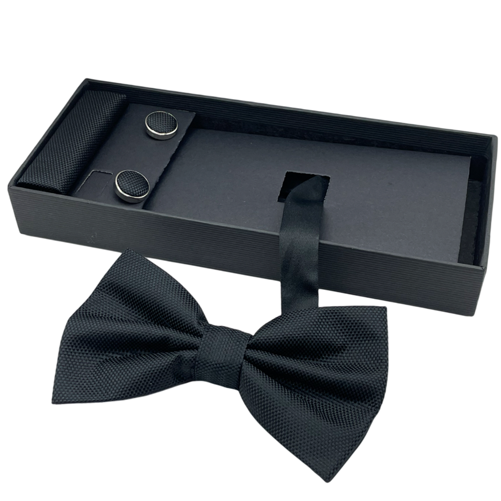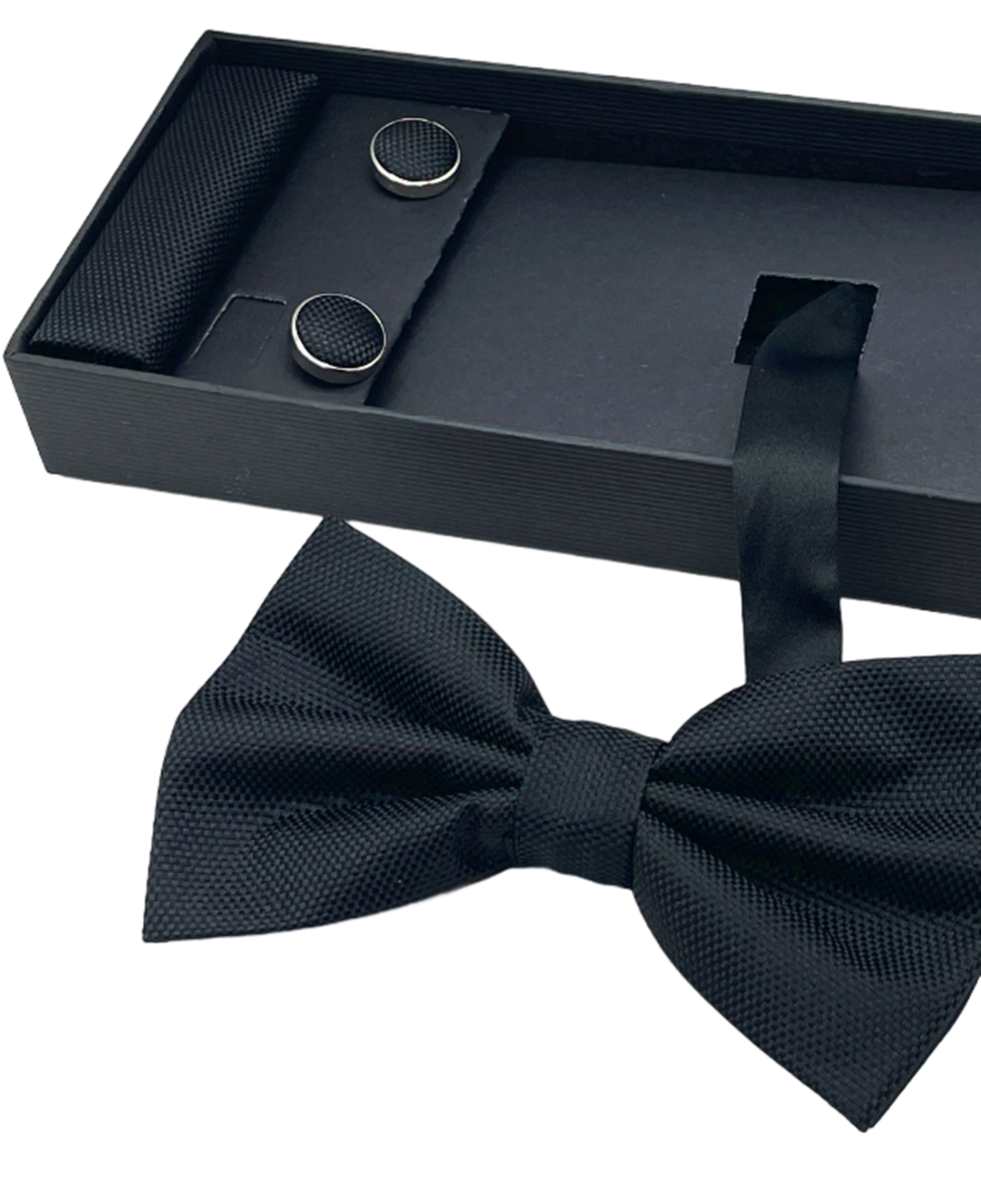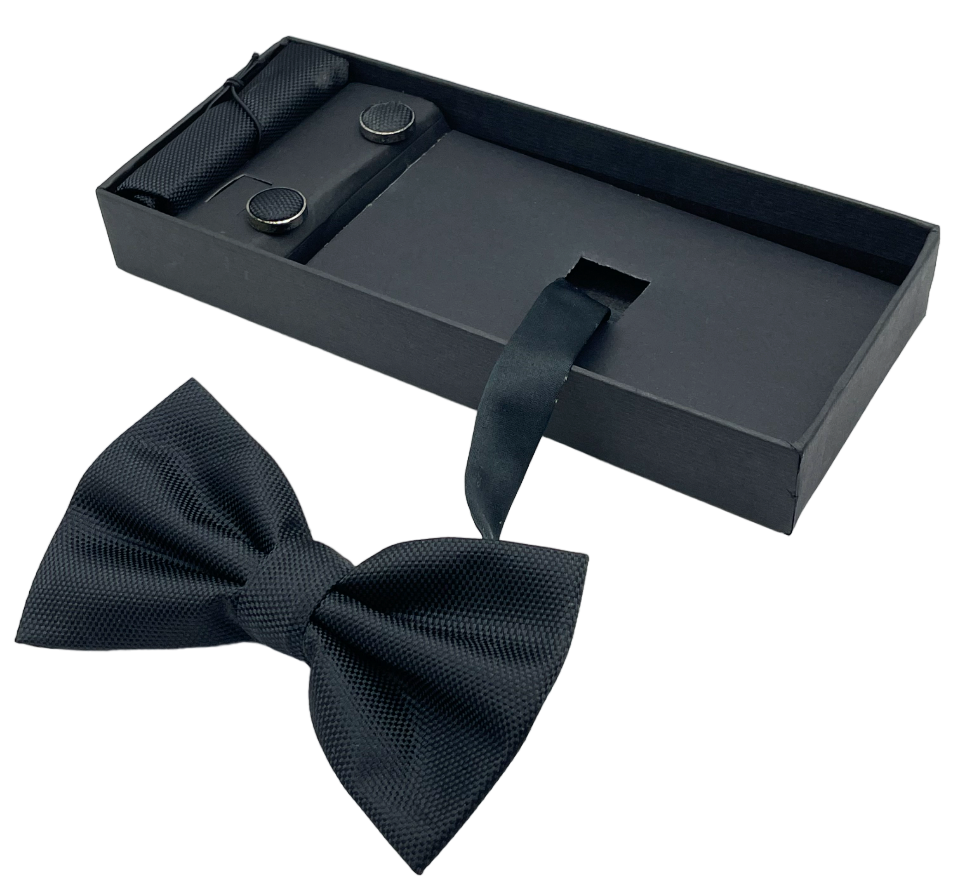 Set accesorii vestimentare cu papion, batista de buzunar si butoni