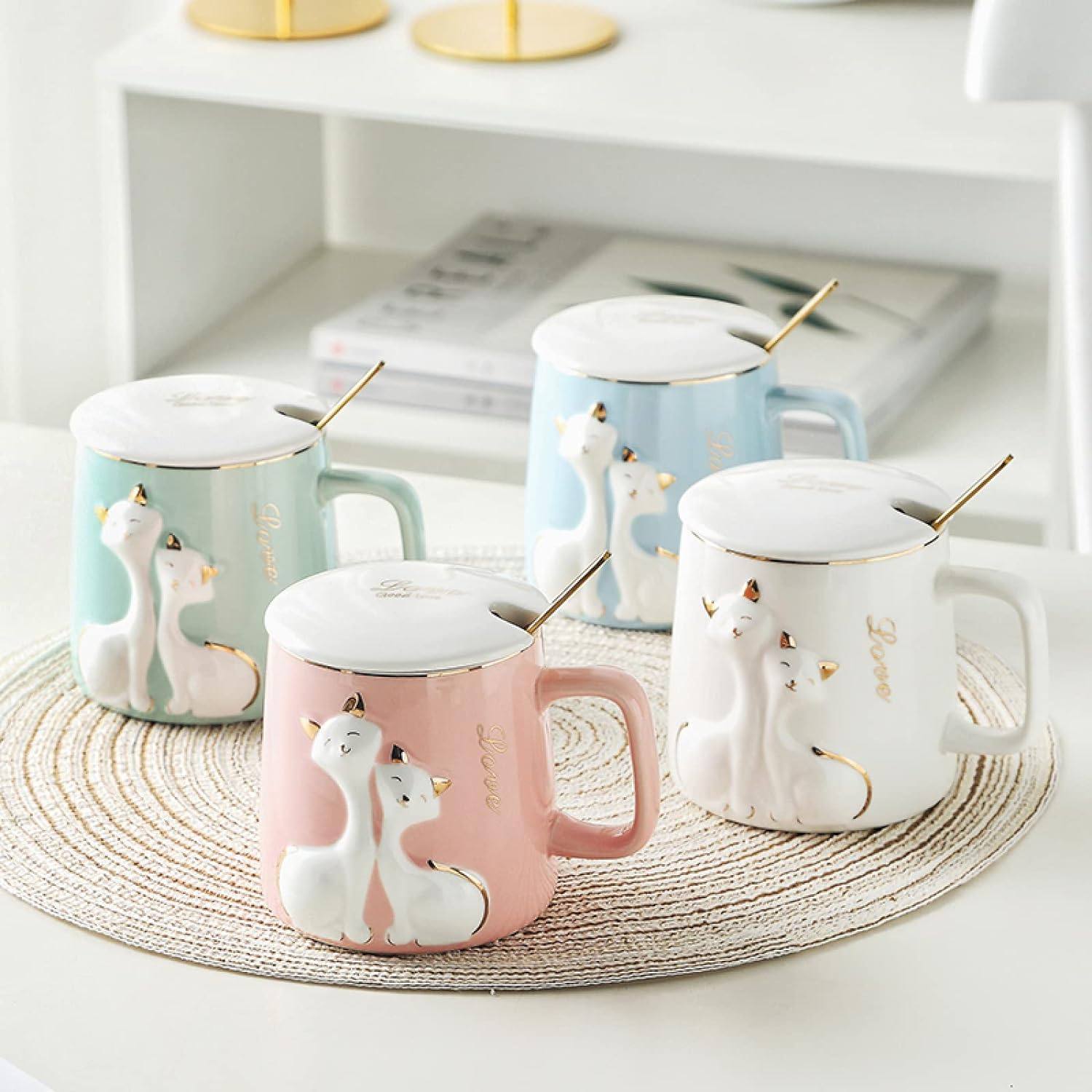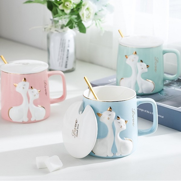 Cana cu PISICA LOVE, Alb, 400ml, Cu capac